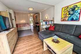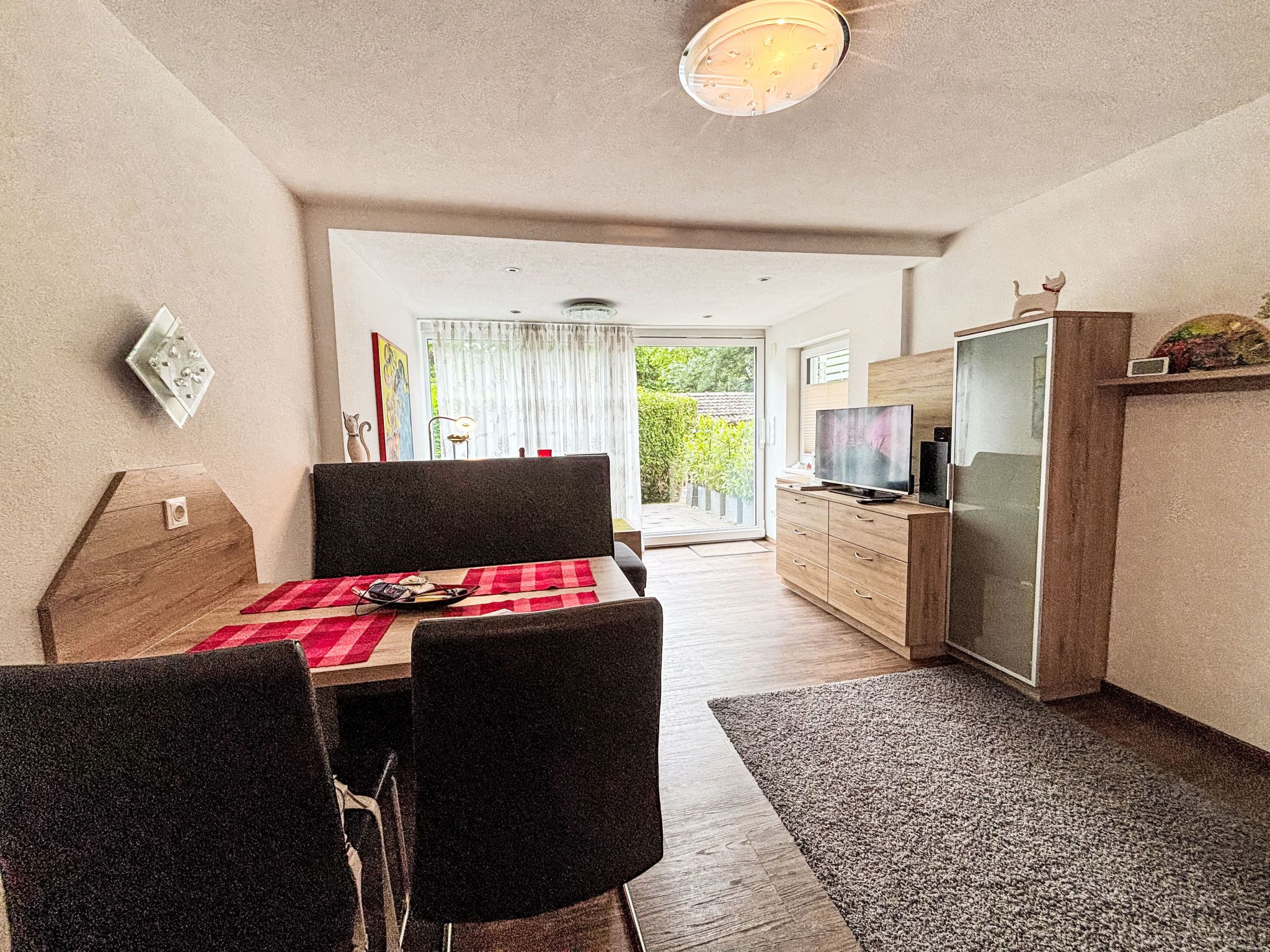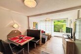 TOP 4, 1-Zimmer-Wohnung 33 m2, im Erdgeschoss. Schön und gemütlich eingerichtet: Wohn-/Schlafzimmer mit 1 Doppelbett, Esstisch, Sat-TV und Internationale TV-Sender (Flachbildschirm). Ausgang zur Terrasse. Kleine Kochnische (Backofen, Geschirrspüler, 4 Glaskeramikplatten, Wasserkocher, elektrische Kaffeemaschine). Dusche/WC. Fussbodenheizung. Parkettboden. Kleine Terrasse. Terrassenmöbel. Zur Verfügung: Internet (WLAN, gratis). Bitte beachten: Nichtraucher-Unterkunft.
