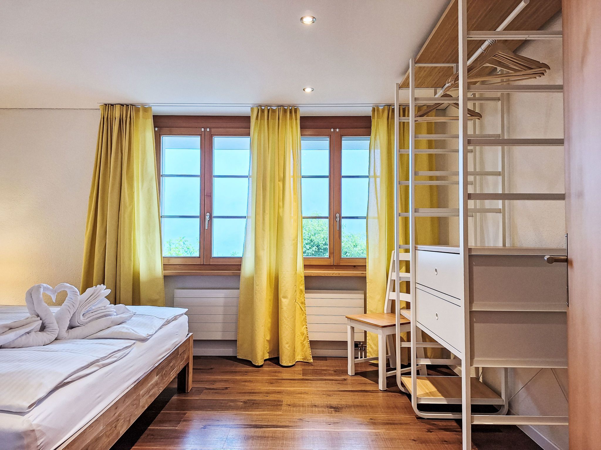 Modernes, sehr komfortables Mehrfamilienhaus Chalet Adlerhorst, auf 3 Stockwerken. Im Ortsteil Herrschaft, 1.6 km vom Zentrum, ruhige, sonnige Lage am Hang. Im Hause: Skiraum, Zentralheizung, Waschmaschine, Wäschetrockner (zur Mitbenutzung). Zufahrt bis zum Haus. Im Winter bitte Schneeketten mitbringen. Parkplatz beim Haus. Einkaufsgeschäft 1.6 km, Lebensmittelgeschäft 500 m, Bushaltestelle Stein 270 m, Bahnstation Grindelwald Dorf 1.4 km, Freibad 2.8 km, Hallenbad 1.6 km. Golfplatz (9 Loch) 4 km, Luftseilbahn 3 km, Skisportanlagen 3 km, Kinderskischule 2.2 km. Bekannte Seen in der Umgebung sind gut erreichbar: Thuner-/Brienzersee. Bitte beachten: Fahrzeug empfohlen.