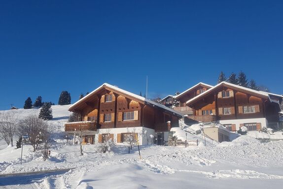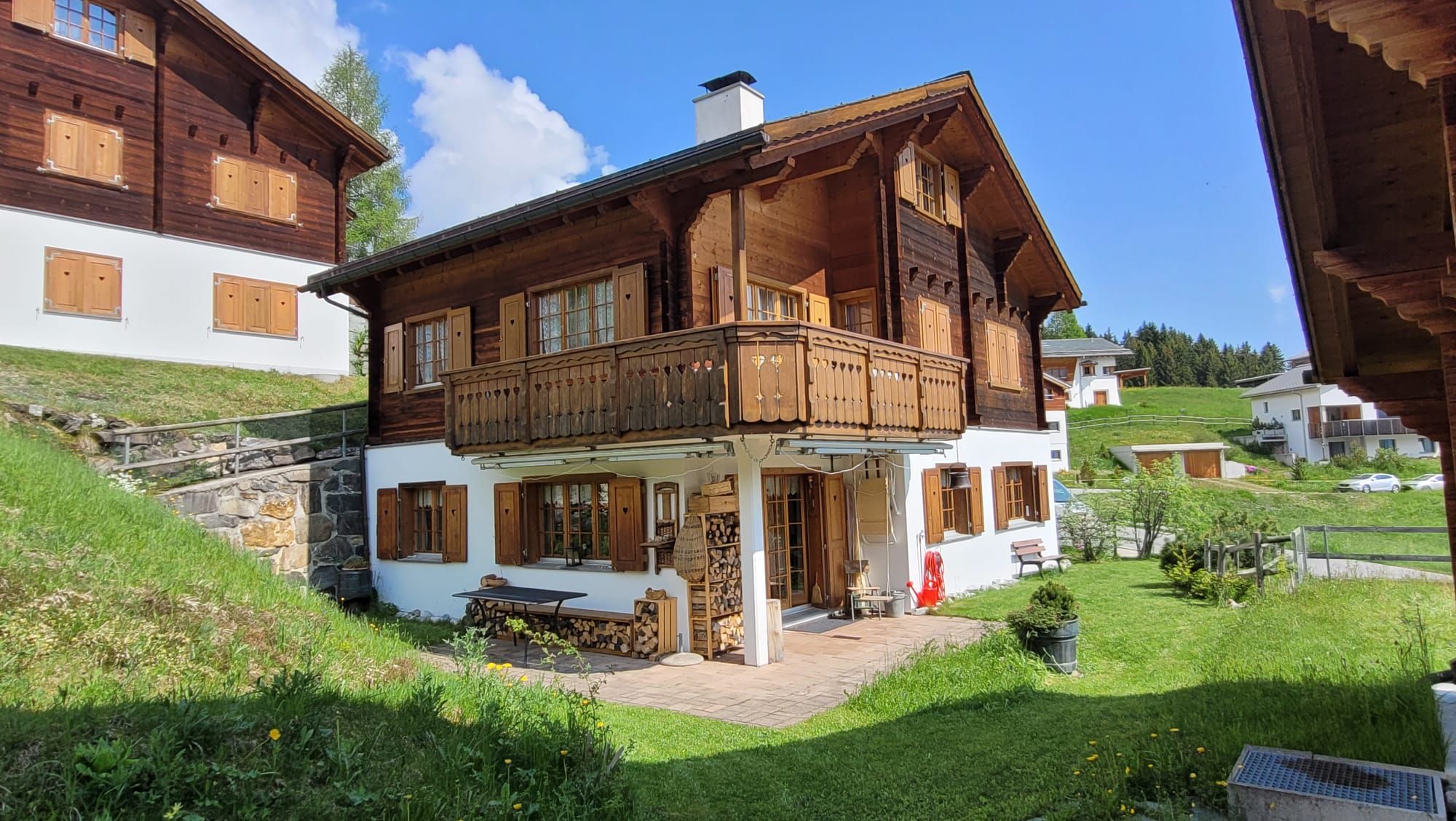 Vor dem Haus lädt die Liegewiese mit Grillstelle, Gartentisch und Sonnenschirm zum Verweilen ein. Abstellraum für Ski/Snowboards steht zur Verfügung und Schlitten sowie Bob sind vorhanden. Zwei Aussenparkplätze stehen direkt vor dem Haus.