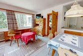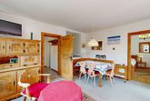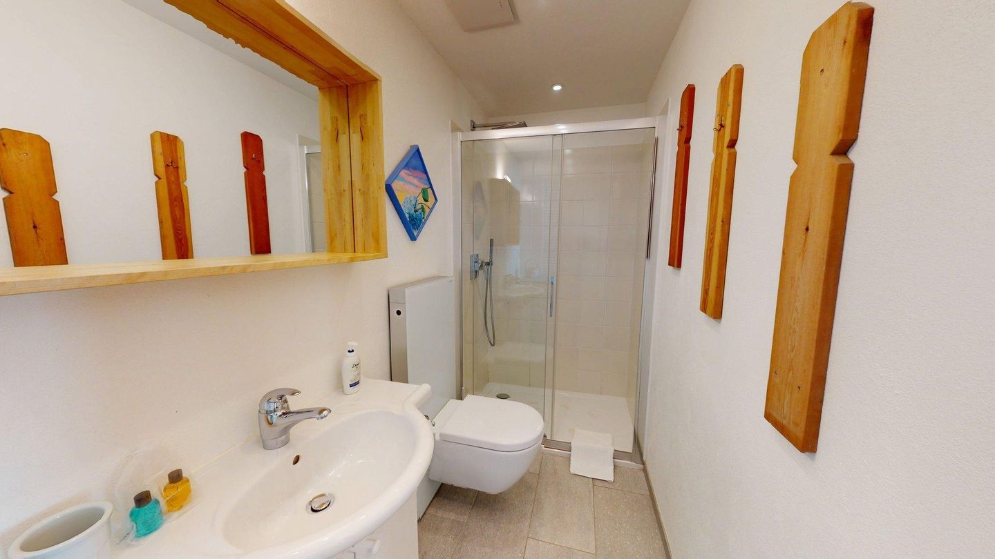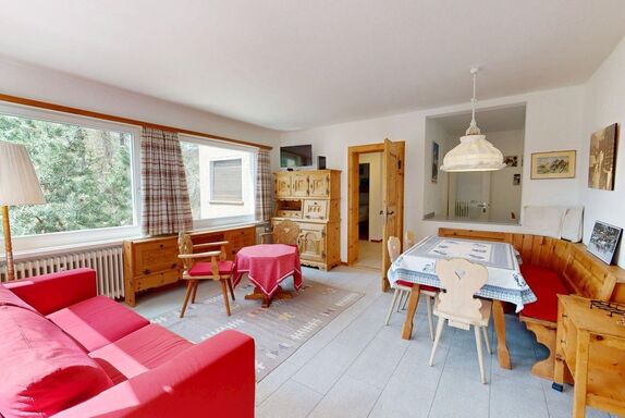 Diese helle 3.5 Zimmer-Wohnung im 1. Obergeschoss begeistert mit einer neu renovierten Küche, modernen Bädern und einer charmanten Wohnatmosphäre. Der Ausblick auf die umliegende Bergwelt verleiht dem Zuhause eine besondere Ruhe und Weite. Der grosszügige Wohn- und Essbereich ist einladend gestaltet und bietet viel Tageslicht sowie eine angenehme Wohlfühlatmosphäre. Die moderne Küche ist hochwertig ausgestattet und lässt keine Wünsche offen – ideal für gemütliche Kochabende mit Familie oder Freunden. Die Ferienwohnung verfügt über zwei komfortable Schlafzimmer; ein Zimmer mit Doppelbett und ein Zimmer mit zwei Einzelbetten und einem praktischen Schreibtisch (ein drittes Einzelbett kann auf Wunsch ergänzt werden) Beide Räume bieten Rückzugsorte für erholsame Nächte. Zwei stilvolle Badezimmer sorgen für zusätzlichen Komfort; ein Bad mit Badewanne, Dusche, WC und Bidet