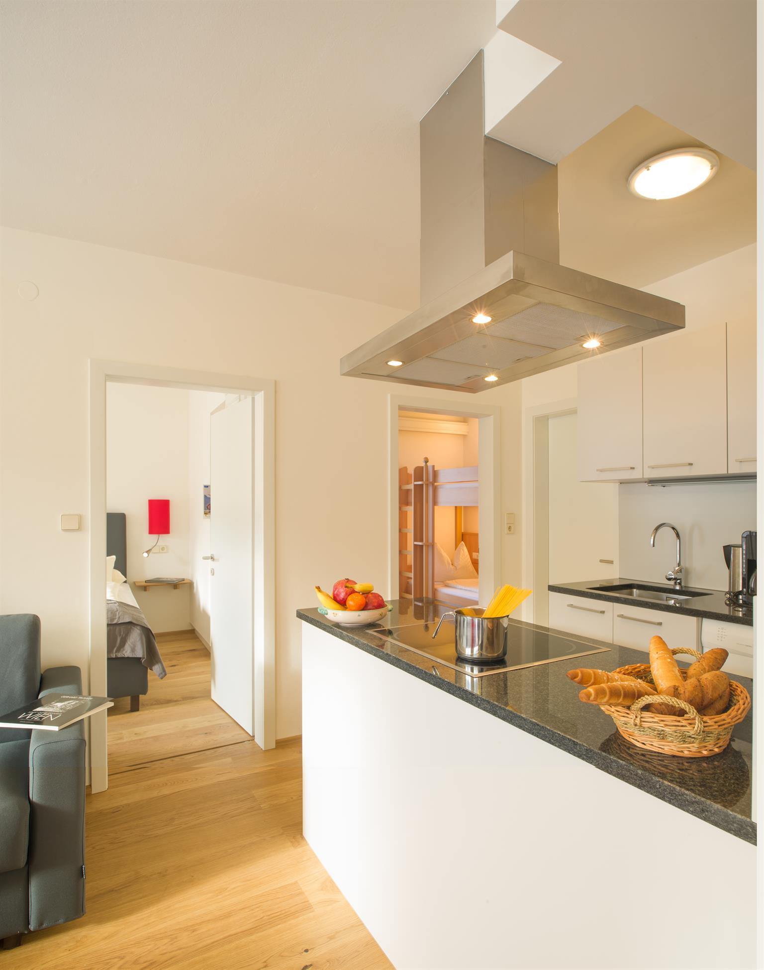 Alle unsere Apartments bieten eine voll ausgestattete Küche.