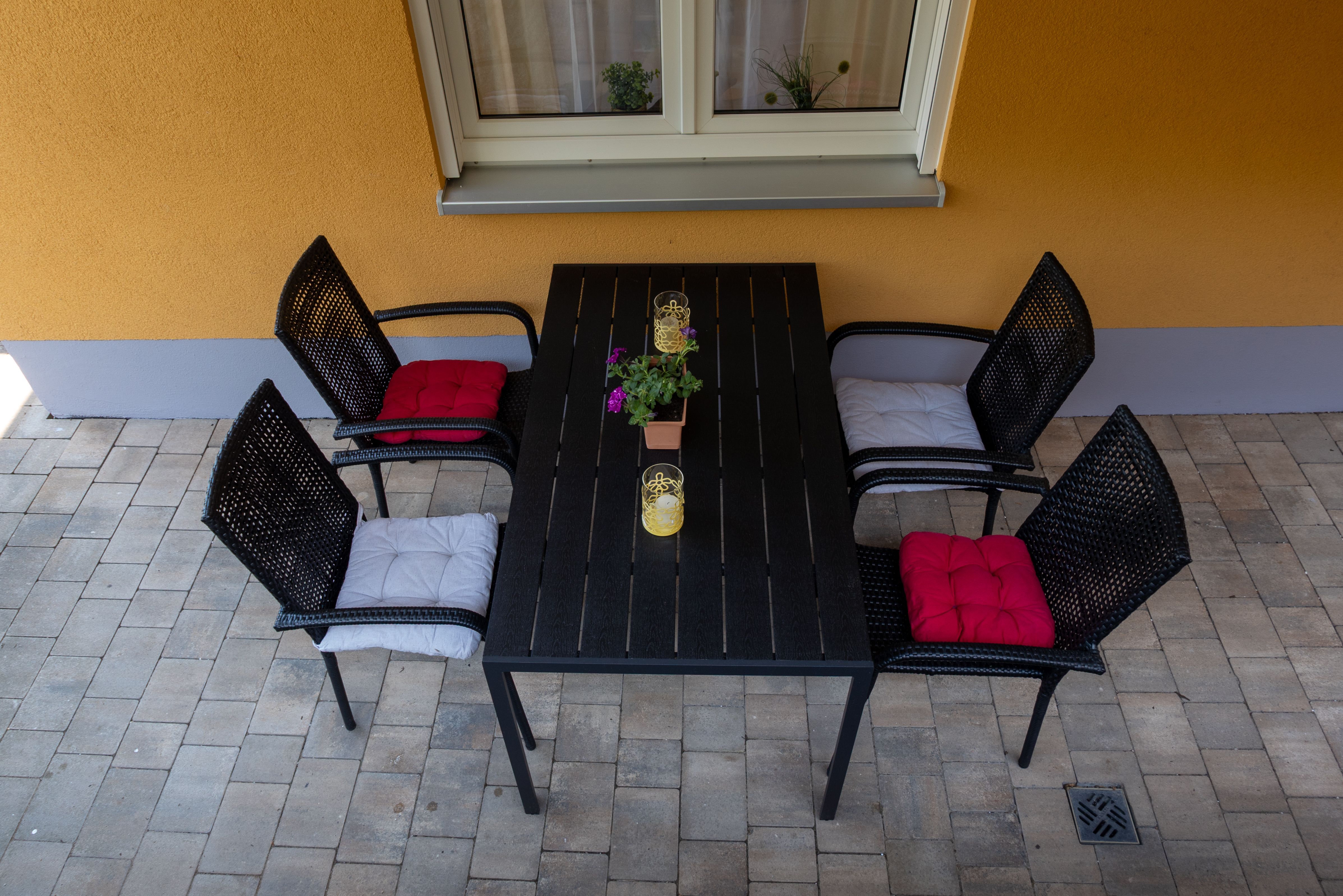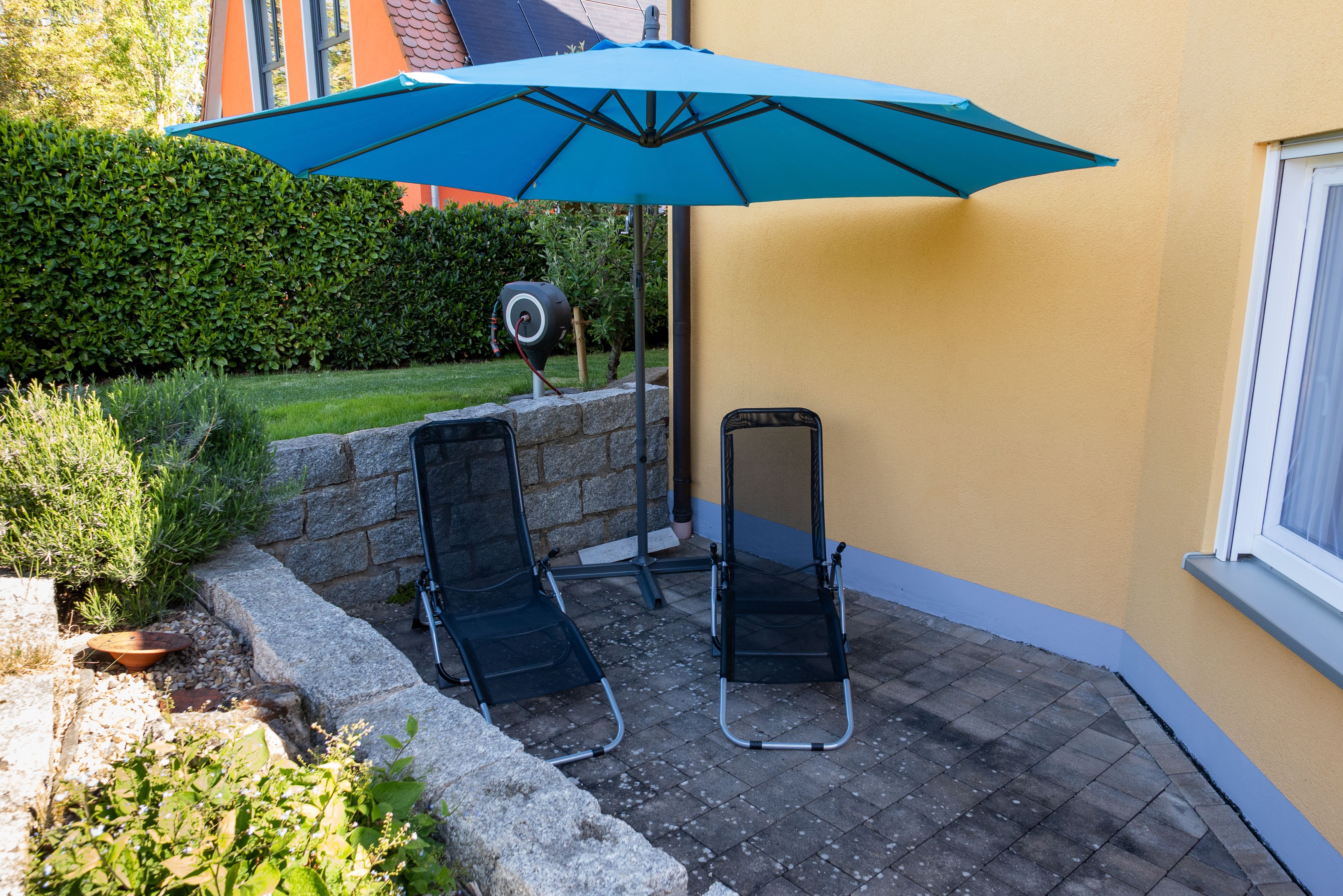 Ein Highlight ist die großzügige Terrasse die zum Teil auch überdacht ist.