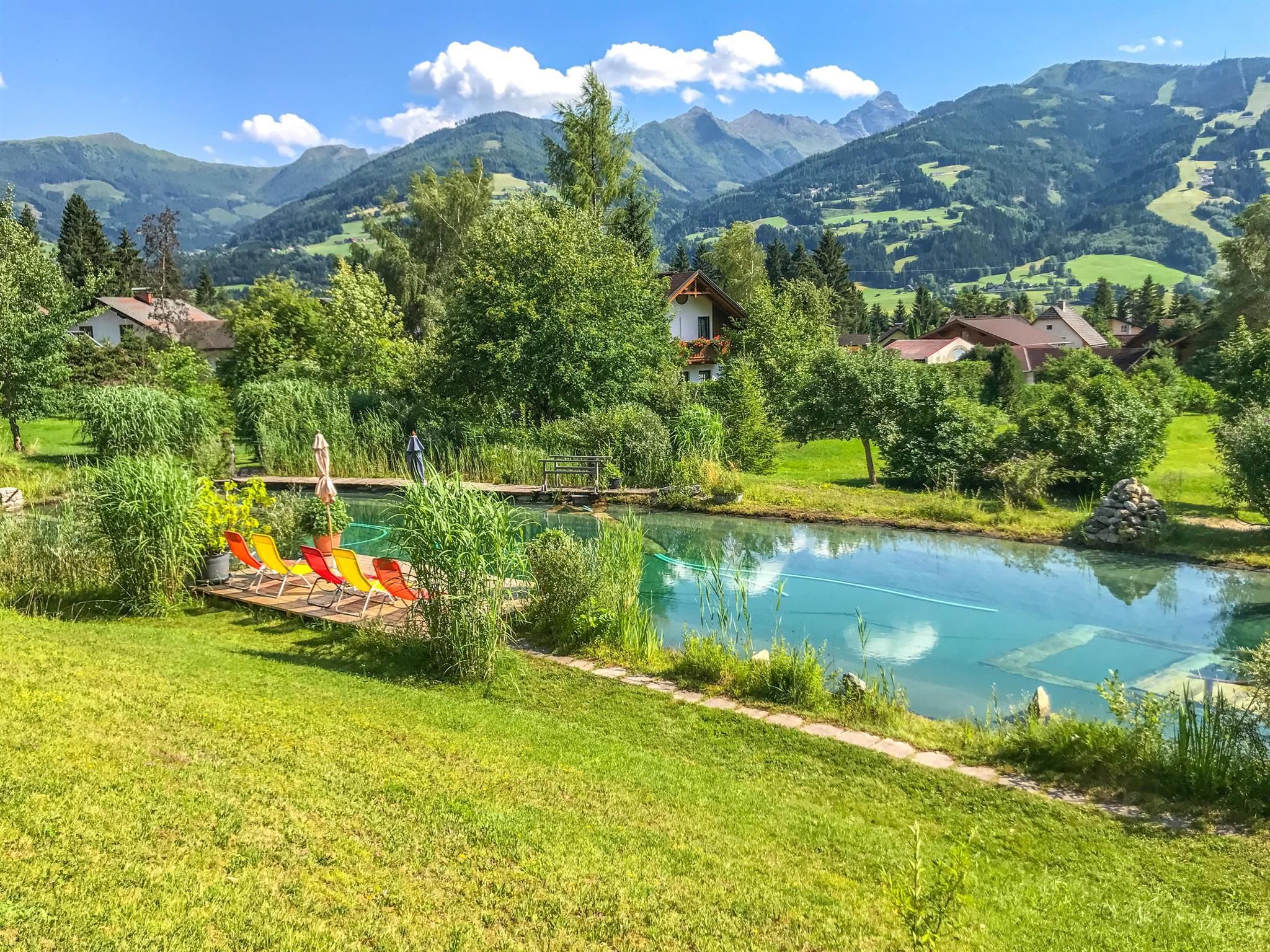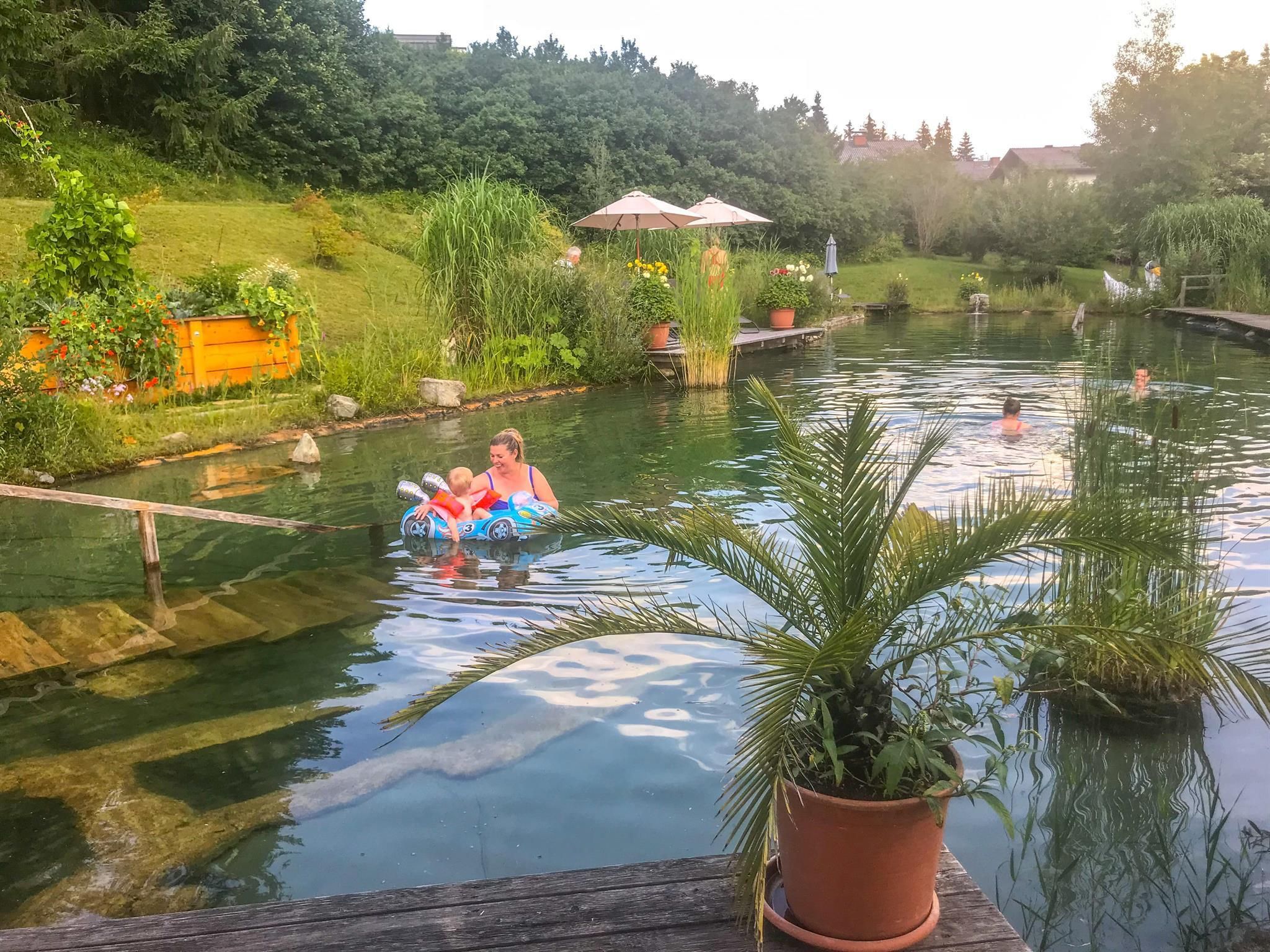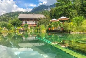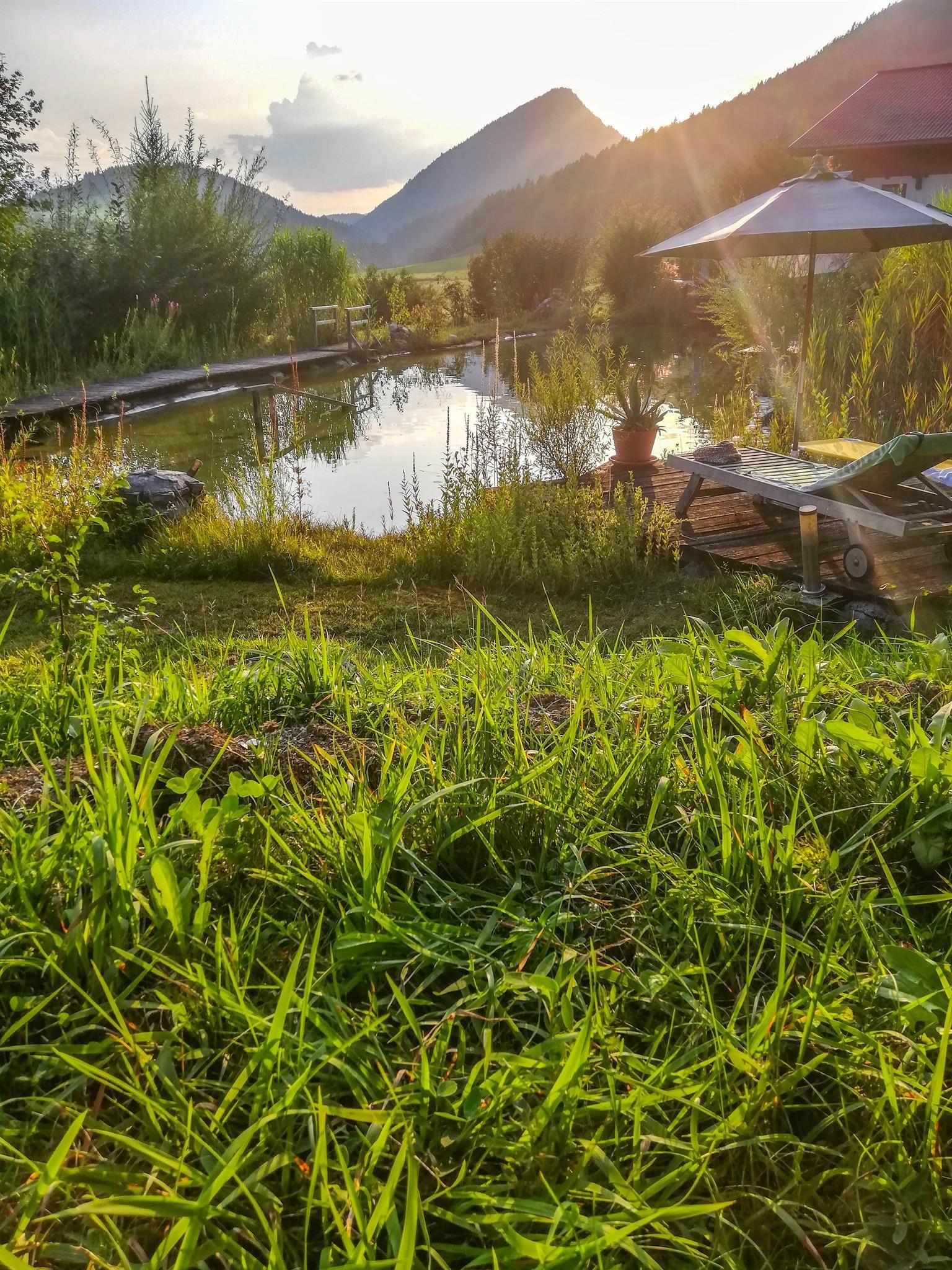 Eine weitere Besonderheit am Rapplhof ist unser Badeteich, in dem Sie sich im Sommer erfrischen können. Bei einem Ausmaß von 30 x 10 m bleibt fast kein Wunsch offen. Es gibt nichts Schöneres als eine Abkühlung im Schwimmteich nach einer erlebnisreichen Wanderung in den Schladminger Tauern oder am Dachstein.
