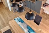 Schnelles und kostenloses WLAN . Sehr schöne und offen Küche . Neu und modern eingerichtet.
