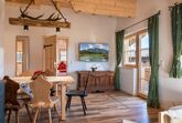 Das 63m² große Nebenhaus, unsere Almhütte besteht aus einem großen Bad, zwei Toiletten, zwei separaten Schlafzimmern, einem großzügigen Wohn- / Essbereich und Küche mit großem Flachbildschirm. Schlafzimmer 1 verfügt über ein großes Doppelbett, das Schlafzimmer 2 verfügt über ein 140 cm Bett und einem Stockbett darüber mit 90x200 cm und im Wohnzimmer befindet sich eine Schlafcouch für maximal 2 Kinder. In beiden Schlafzimmer befindet sich ein Holzboden und in den anderen Zimmern finden Sie einen Fließenboden in Parkett-Optik. Im gesamten Haus gibt es eine Fußbodenheizung. Auf der außenliegenden Terrasse und am Balkon steht Ihnen eine Grillmöglichkeit zur Verfügung.