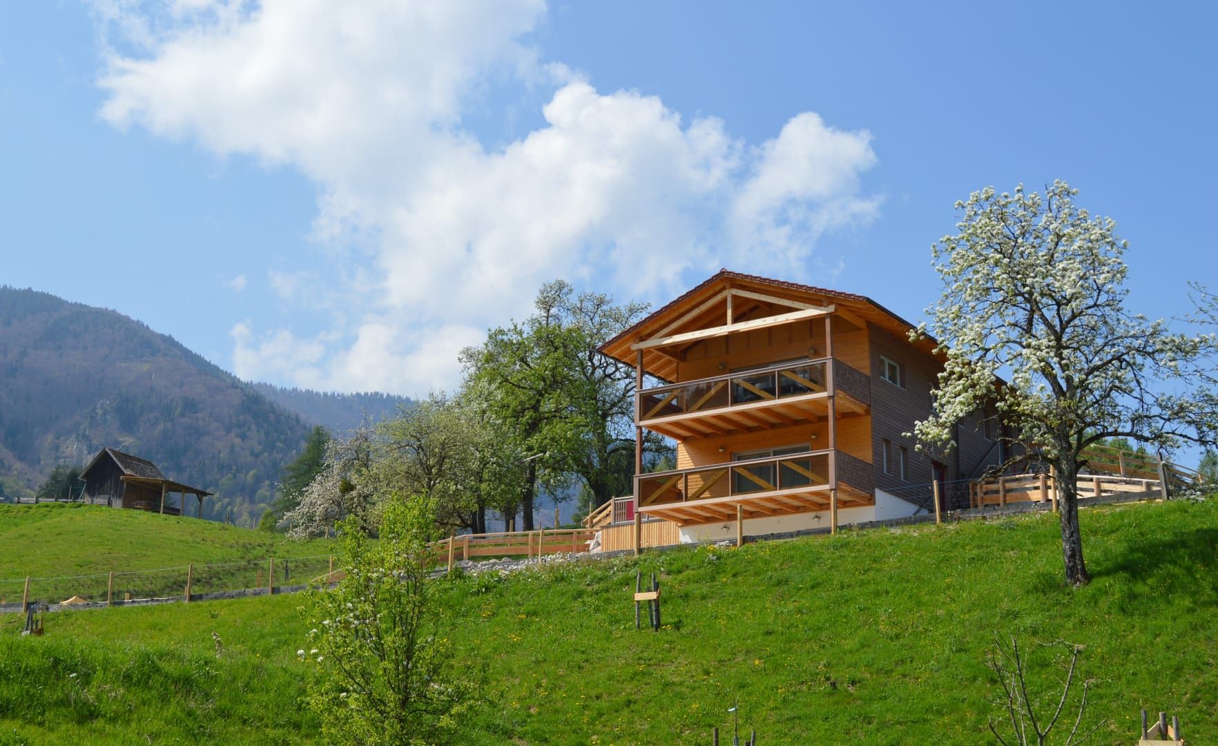 Frühjahr: Weidezäune reparieren, Bäume setzen. Frühling bis Herbst: Sie können gerne unsere Mutterschafherde und die Pferde auf der Weide besuchen und uns helfen, diese bei Bedarf umzukoppeln. Im Sommer: Heuernte live - Heugabel statt Fitnesscenter! Herbst: Äpfel- und Birnenernte: Saft bzw. Most pressen bzw. trocknen der Früchte. Im Spätherbst kommen unsere Schafe und die Pferde von den Weiden wieder in ihre Laufställe, wo sie dann täglich mit Heu versorgt werden. Spätherbst bzw. Winter: Bäume zum richtigen Zeitpunkt mondgeerntet, die vorher bei Waldspaziergängen vom Tischlermeister persönlich für ihre weitere Bestimmung ausgesucht worden sind. Nutz- und Brennholz für den Eigenbedarf wird geschlägert.