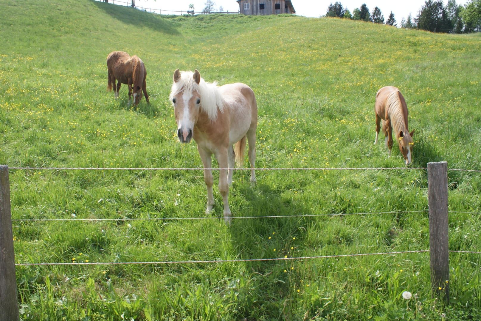 Mutterschafe und Pferde für unser Grünland. Spüren Sie bei uns die Faszination des Waldes. Erleben Sie die Bewirtschaftung rund ums Jahr hautnah mit. Spüren Sie den Einklang von Holz, Natur und den Tieren. Waldpädagogik mit Franz und Wildkräuterpädagogik mit Anna inklusive.