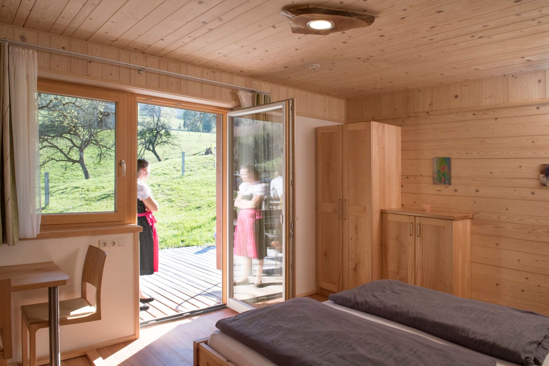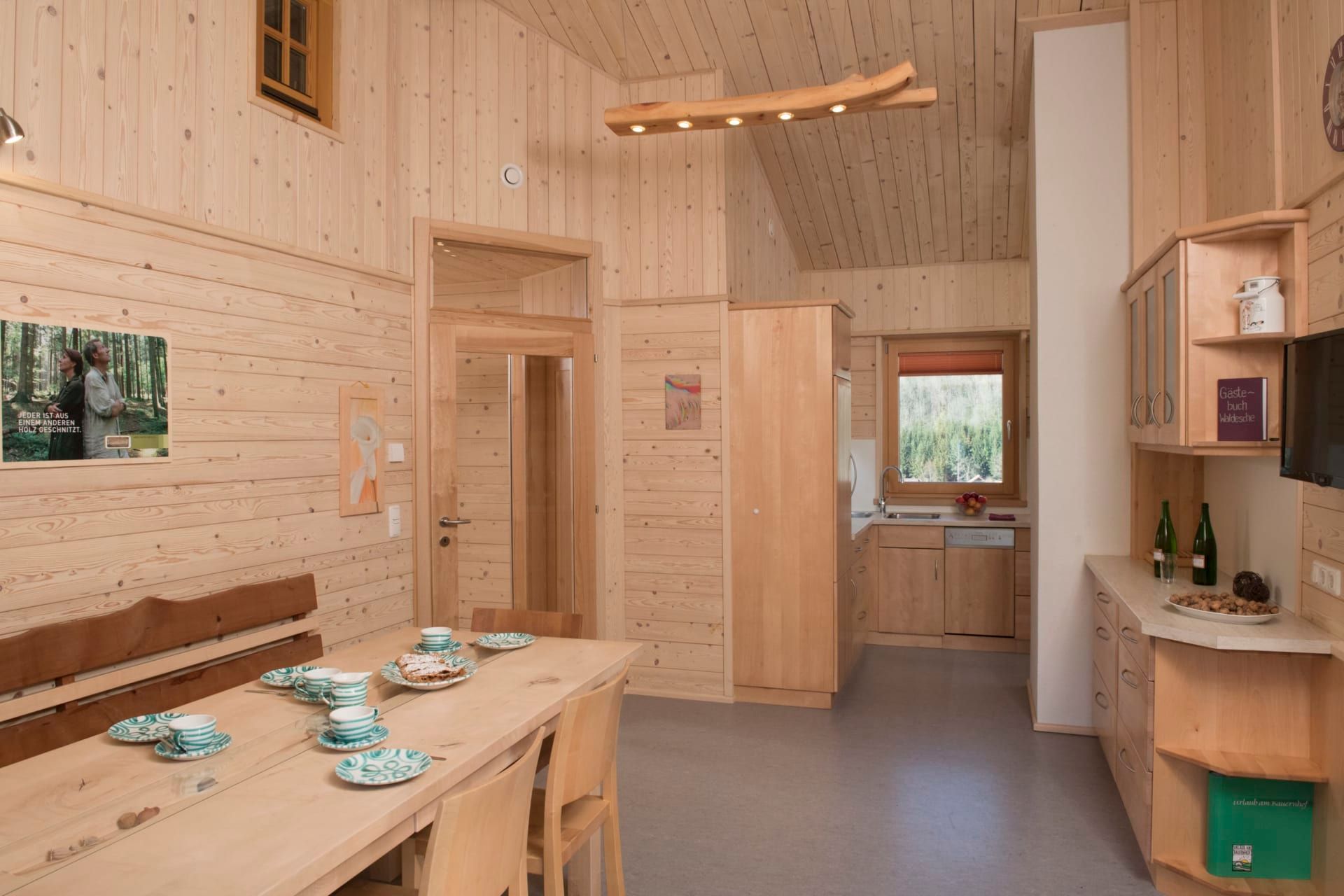 Öffnet man die Eingangstür, wird man vom unvergleichlichen Flair und dem Duft des Holzes aus unserem eigenen Wald empfangen. Das Ferienhaus ist mit hochwertigen geölten Böden, Türen, Betten und Möbeln aus unserer Tischlerwerkstätte eingerichtet. Erleben Sie bei uns hautnah die Faszination des Holzes von der kleinen Waldpflanze bis zum fertigen Möbelstück!
