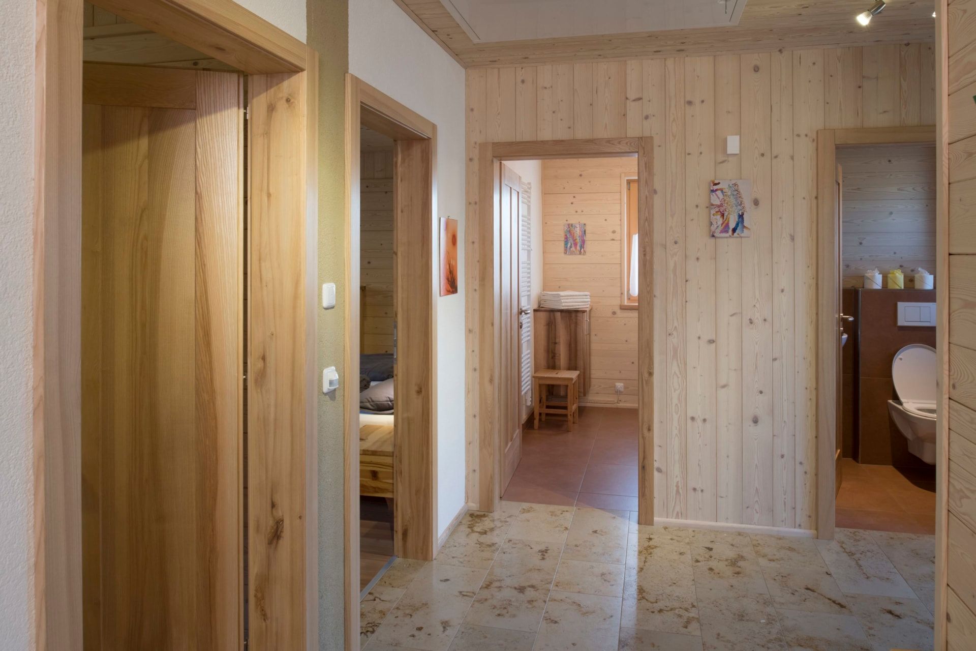 • ökologisches, gemütliches Wohnen (geöltes Vollholz und Lehmputz)