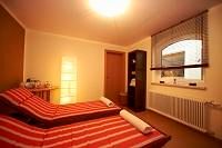 Das neu ausgestattete Appartement verfügt über zwei getrennte Schlafzimmer mit Doppelbett und zwei Einzelbetten, Balkon, eine geräumige und voll ausgestattete Wohnküche, WC und ein getrenntes Bad mit Dusche.