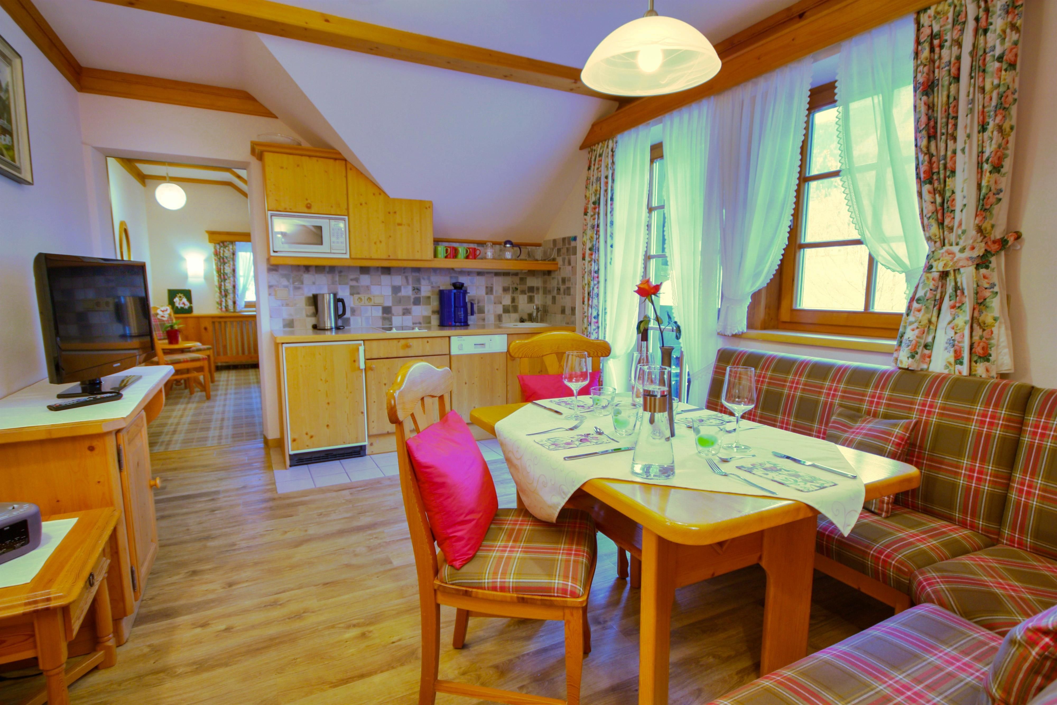 Das Haus Sonne bietet eine gemütliche Unterkunft für die schönsten Tage im Jahr. Steirische Gastfreundschaft und eine herzliche Atmosphäre prägen den Alltag im Haus Sonne, wo sich der Gast vom ersten Moment an wie zu Hause fühlt. Die hellen, freundlich eingerichteten und voll ausgestatteten Ferienwohnungen im Landhausstil bieten Platz für Familien bis zu 6 Personen. Alle Ferienwohnungen verfügen über einen Balkon mit herrlichem Blick auf die imposante Bergwelt von Ramsau am Dachstein. Die Sprungschanze von Ramsau am Dachstein sehen Sie direkt von unseren Ferienwohnungen aus.