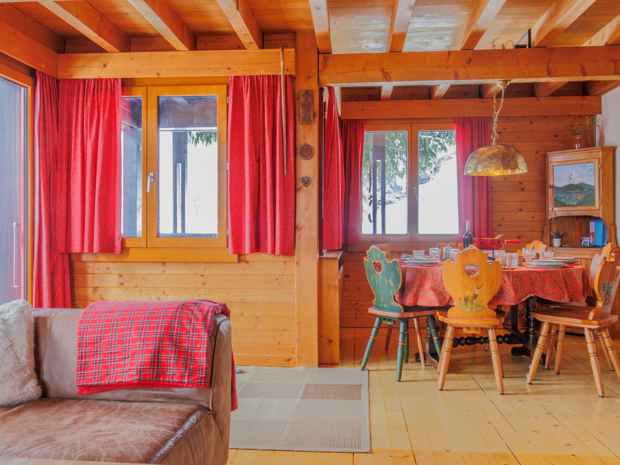 Le Cyclamen, 5-Zimmer-Chalet 150 m2. Komfortabel und gemütlich eingerichtet: Wohn-/Esszimmer mit offenem Kamin und TV. Ausgang zum Balkon. 1 Zimmer mit 2 Betten (90 cm, Länge 200 cm). Kleine, offene Küche (Backofen, Geschirrspüler, 4 Glaskeramikplatten, Toaster, Wasserkocher, Tiefkühler, elektrische Kaffeemaschine, Racletteofen, Fondue Set (Chinoise, Käse)). Bad, sep. WC. Unteres Geschoss: Dusche, sep. WC, Sauna. Obergeschoss: 1 Zimmer mit 1 Doppelbett (160 cm, Länge 200 cm). 1 Zimmer mit 1 Bett (80 cm, Länge 160 cm), 1 Doppelbett (160 cm, Länge 200 cm). Balkon, Terrasse. Gartengrill (mobil). Schöne Sicht auf die Berge und die Skipiste. Zur Verfügung: Bügeleisen, Babybett bis 2 Jahre, Haartrockner. Internet (Wireless LAN, gratis). Bitte beachten: Nichtraucher-Unterkunft. Ski-in/Ski-out / Es stehen 4 Schlitten zur Verfügung.