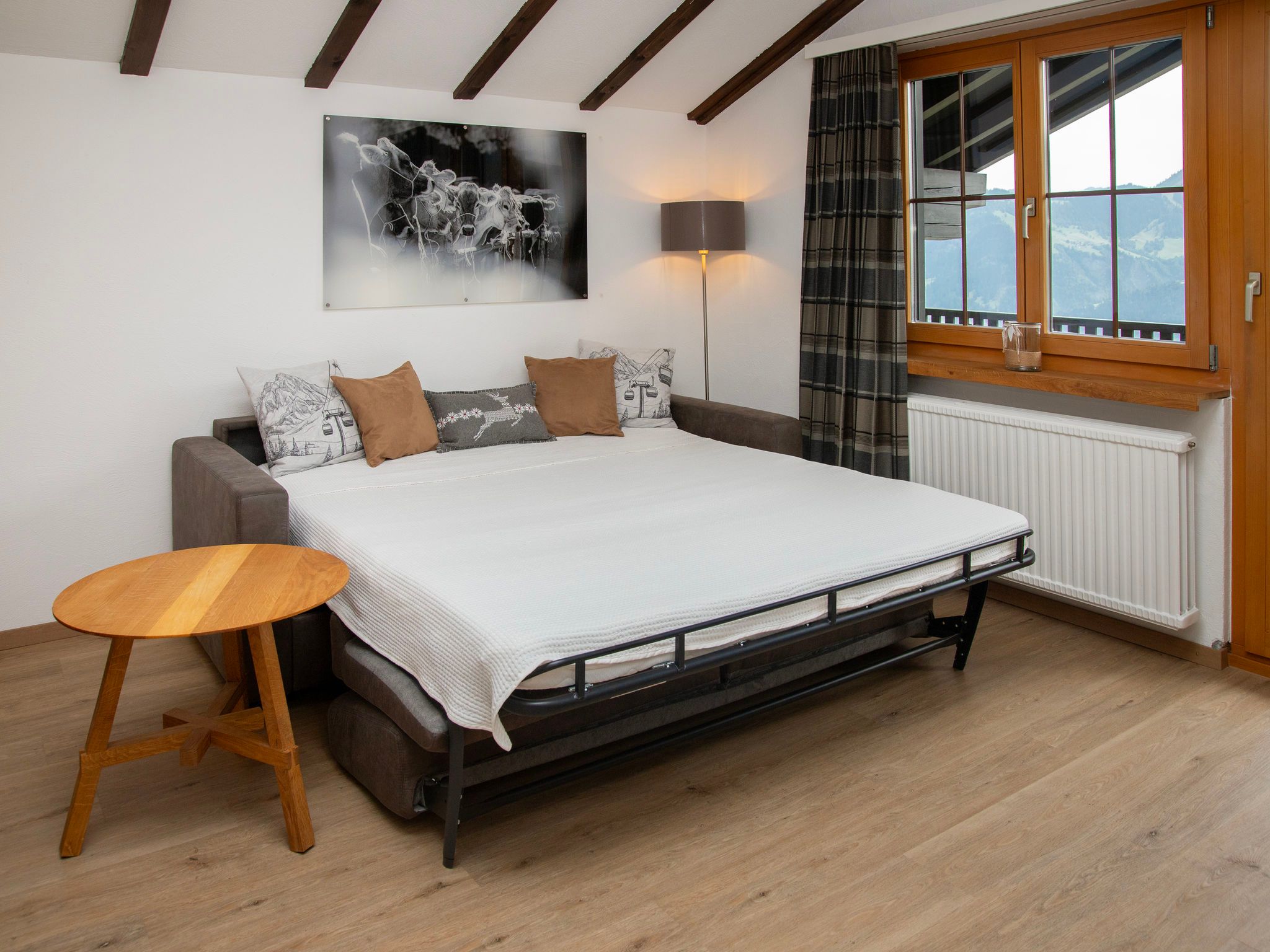 La Siala Apt.28, 2-Zimmer-Wohnung 42 m2, im Dachgeschoss. Komfortabel und gemütlich eingerichtet: Wohn-/Esszimmer mit 1 Doppeldiwanbett und Kabel-TV (Flachbildschirm). Ausgang zum Balkon. 1 Doppelzimmer. Offene Küche (Backofen, Geschirrspüler, 4 Glaskeramikplatten, Toaster, Wasserkocher, Mikrowelle, elektrische Kaffeemaschine, Kapseln für die Kaffeemaschine (Nespresso) extra, Racletteofen, Fondue Set (Käse)). Bad/WC. Balkon 8 m2, Südlage. Balkonmöbel. Sehr schöne Sicht auf die Berge, das Tal und die Landschaft. Zur Verfügung: Haartrockner. Internet (WLAN, gratis). Parkplatz Nr. 1, Garage beim Haus. E-Ladestation. Bitte beachten: Nichtraucher-Unterkunft. Maximal 1 Haustier/Hund erlaubt.