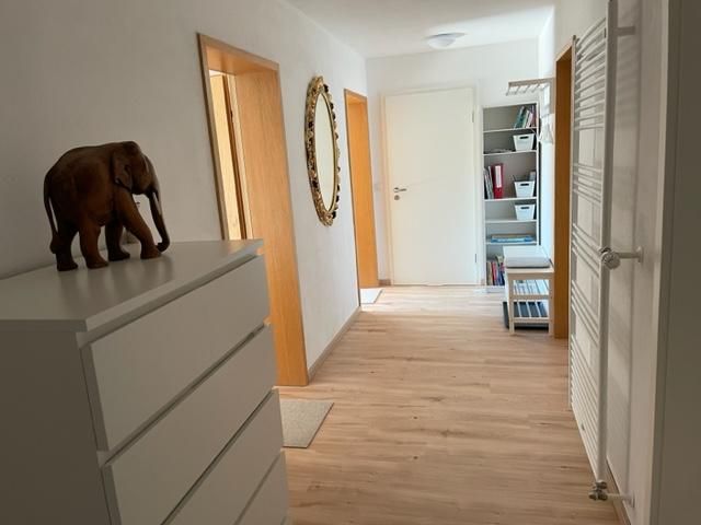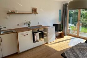Die gemütliche Wohnküche ist ausgestattet mit Geschirrspüler, Herd mit Backofen, Kaffeemaschine, Wasserkocher, Toaster, ebenso mit SAT-TV. Von der Wohnküche aus erreichen Sie direkt die Terrasse, wo Sie sich in den Liegestühlen entspannen können oder in der Abendsonne eine Brotzeit vorbereiten können. In der geräumigen Diele können Radl- und Wandererkleidung und Schuhe getrocknet werden. Handtücher, Fön und Handtuchtrockner finden Sie im kleinen Bad mit Dusche/WC.