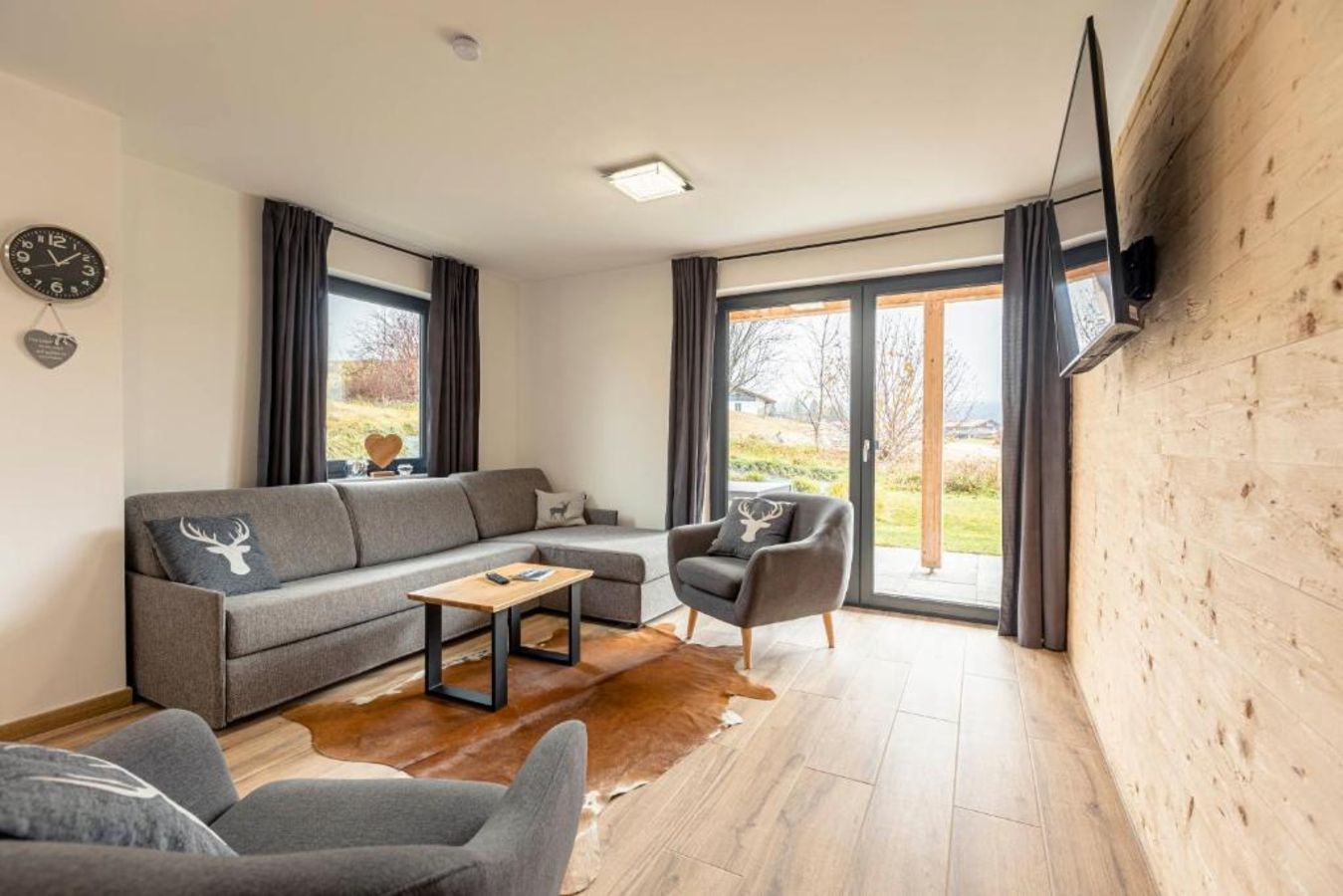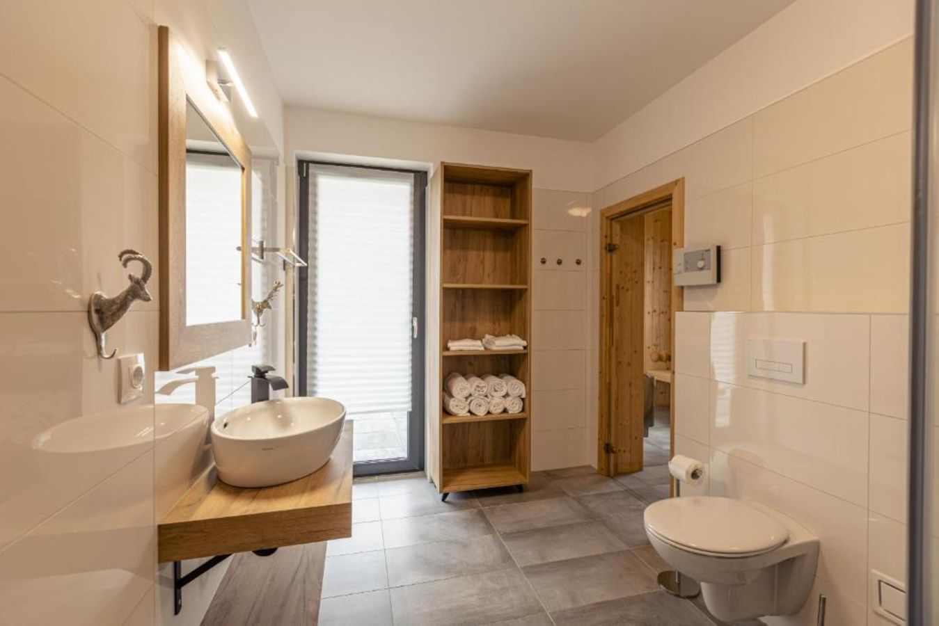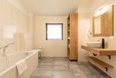 Die Schlafzimmer sind großzügig geschnitten und mit einem komfortablen Doppelbett (180x200 cm) ausgestattet. In einem Schlafzimmer ist zusätzlich zum Doppelbett noch ein Hochbett im Zimmer. Warme Holzmöbel, ein geräumiger Kleiderschrank und große Fenster sorgen für eine gemütliche, helle Atmosphäre. Vom Zimmer aus genießen Sie einen schönen Blick auf die umliegenden Berge oder den Gartenbereich. Verdunkelungsvorhänge sorgen für erholsamen Schlaf.