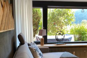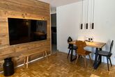 Unser Apartment Bergnest im Stil Alpenchic vereint Gemütlichkeit mit Moderne. Neben dem abgetrennten Schlafbereich mit Boxspringbett (1,60x2m) steht eine hochwertige Schlafcouch mit hohem Sitz- und Liegekomfort (1,40x2m) zur Verfügung. Diese bietet eine praktische Lösung für zwei weitere Übernachtungsgäste. Ergänzt wird das Ambiente durch einen großen Flachbildschirm, der für entspannende Filmabende sorgt. Ein Highlight ist die neue Einbauküche mit Backofen und Spülmaschine. Die Kombination aus rustikalem Charme und modernen Akzenten schafft einen Raum, der zum Verweilen einlädt. Auch die große Sonnenterrasse mit Berg und Wiesenblick lädt zum Entspannen ein.
