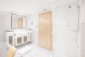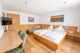 Diese großzügigen Doppelzimmer (ca. 25 m²) liegen in sonniger Lage und verfügen alle über einen eigenen Balkon. Sie sind ideal, um durchzuatmen und abzuschalten. Sie bieten Platz für zwei Personen und sind dank einer zusätzlichen Schlafcouch auch bestens als Dreibettzimmer für zwei Erwachsene und ein Kind bis zwölf Jahre geeignet. Zur Ausstattung zählen ein Bad mit Dusche und WC, ein Haartrockner, ein TV-Gerät, ein Safe, Sitzgelegenheiten, eine Garderobe und genügend Stauraum. Die Einrichtung ist individuell und mit Liebe zum Detail gestaltet. Sie spiegelt die Handschrift des Hausherrn wider, denn die Möbel wurden von ihm persönlich gefertigt. Kein Zimmer gleicht dem anderen – jedes hat seinen eigenen Charakter. Insgesamt stehen fünf dieser Zimmer zur Verfügung, die sich auf das erste bis dritte Obergeschoss verteilen. Bitte beachten Sie, dass es keinen Aufzug im Haus gibt.