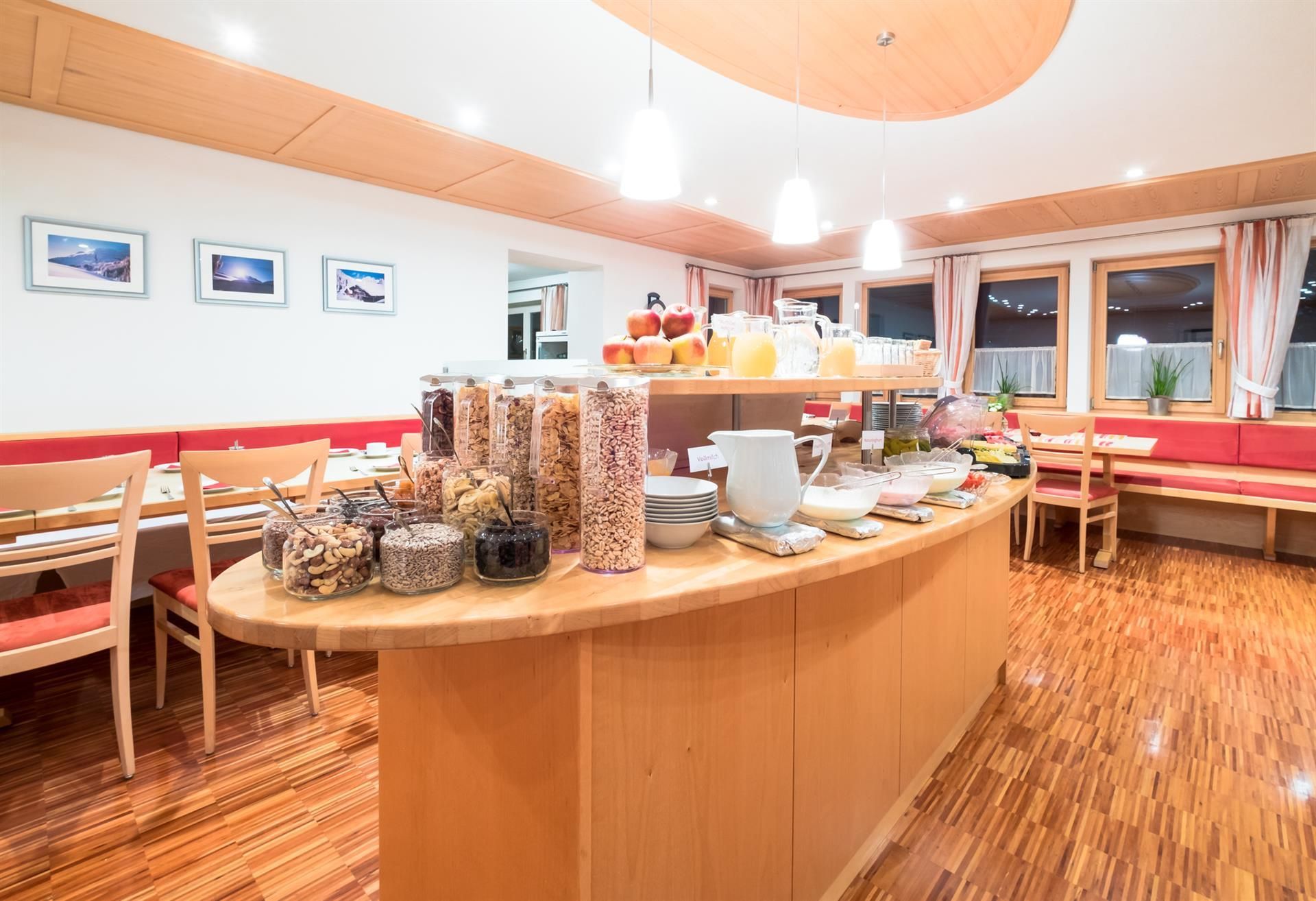 Wir sind ein kleines, familiär geführtes Hotel Garni mit komfortablen Zimmern, einer Parkgarage und einer Sonnenterrasse. Bei uns gibt es keinen Schnickschnack oder Chichi, dafür ehrliche Gastfreundschaft, gute Betten, ein reichhaltiges Frühstück und persönliche Tipps für Ihre Touren. Besonders stolz sind wir auf unser liebevoll gestaltetes Frühstücksbuffet mit regionalen Produkten und täglich frisch zubereiteten Eierspeisen – der ideale Start in den Tag.