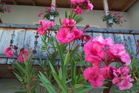 Wasch-Trocknermaschine, Wäscheständer am Balkon oder Garten
