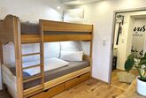 Ein Kingsize-Doppelbett im ersten Schlafzimmer, ein Etagenbett im zweiten Schlafzimmer sowie eine Ausziehcouch im Wohnzimmer bieten max. 5 Schlafplätze - ideal für eine Familie oder eine kleine Reisegruppe.