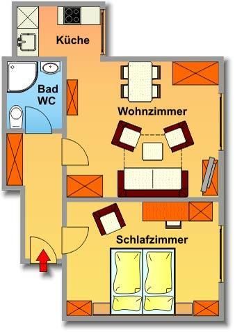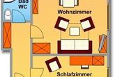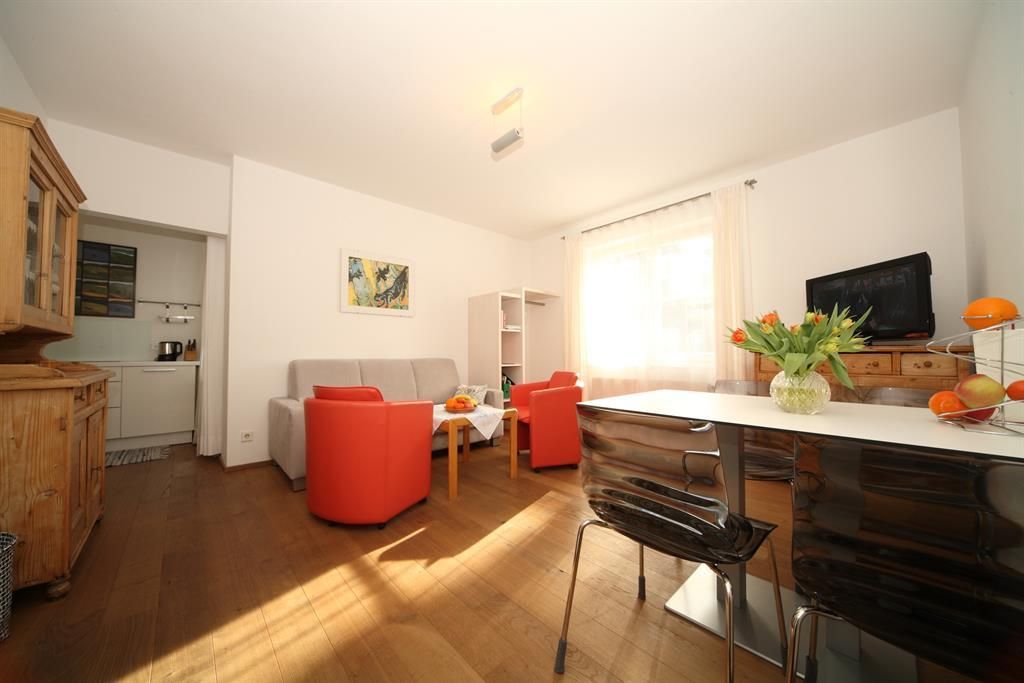 Das gemütlich und modern eingerichtete Appartement Breitfuss bietet auf 50m² Platz für 2-3 Personen. Die Parterrewohnung verfügt über ein Schlafzimmer mit Doppelbett für zwei Personen und einen Schlaf- Wohnraum für 1 Person. Die voll - ausgestattete Küche befindet sich in einer Nische im Wohnzimmer. Der Esstisch bietet Platz für 4 Personen. Das Bad verfügt über eine Dusche und ein WC.