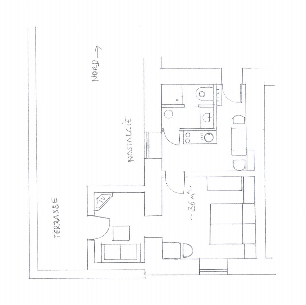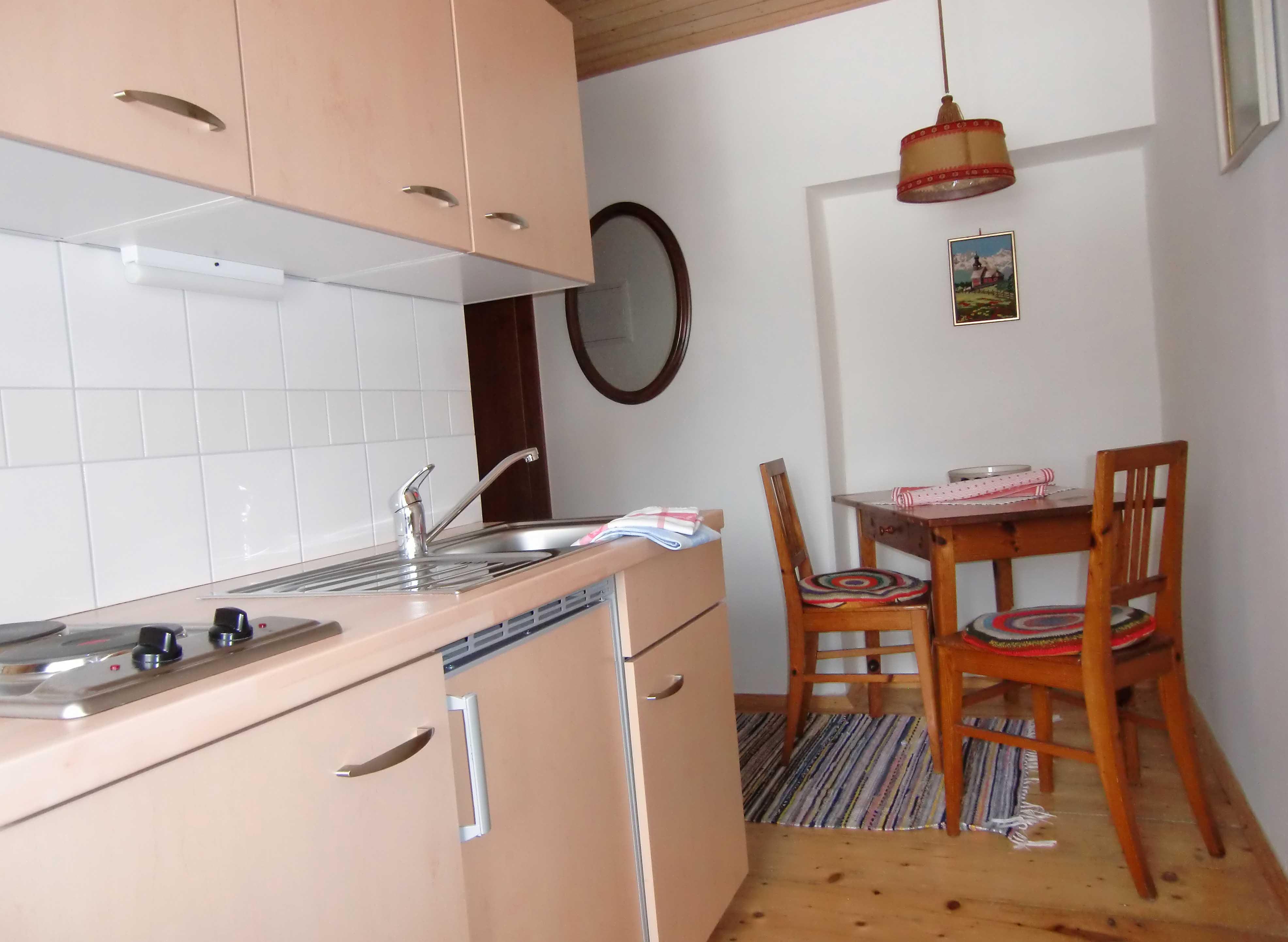 Appartment mit Wohnraum, Dusche und WC, Sat-TV, abgeschlossene Küche und Terrasse.
