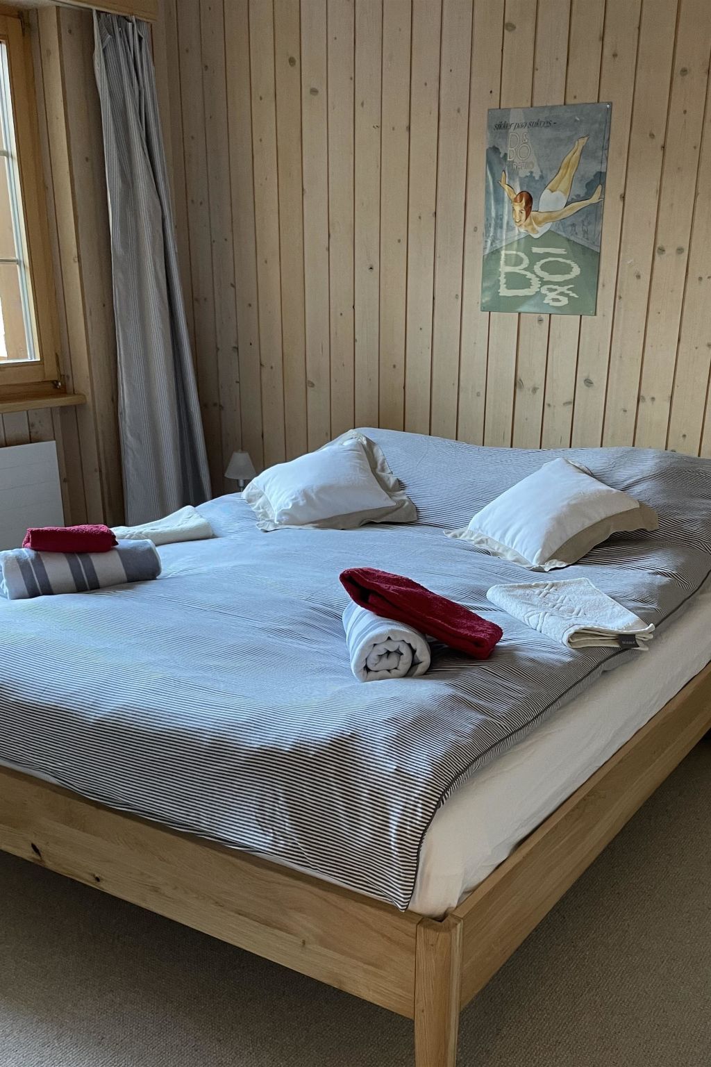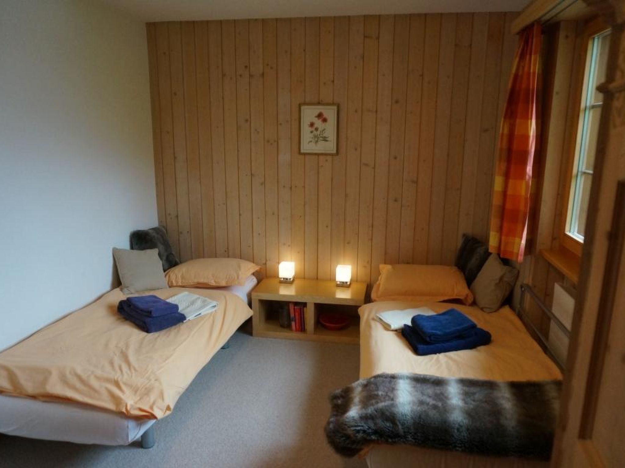 63 m2. Weitere Angaben des Anbieters: 3-Zimmerwohnung (63m2) im 1. Stock eines 1981 erbauten Chalets. Ruhige und sonnige Lage mit Aussicht und nahe des Zentrums sowie der Geschäfte. Einstellhallenplatz und Abstellraum für Sportgeräte sowie Waschmaschine und Wäschetrockner stehen im Untergeschoss zur gemeinschalftlichen Benutzung zur Verfügung. Die Skipiste ist in 1 Minute zu Fuss erreichbar. Die Goldenbahn Rinderberg und der Bahnhof Zweisimmen sind in 10 Minuten zu Fuss erreichbar. Der Tennisplatz und das Schwimmbad befinden sich in der Nähe. Wohn-/Esszimmer mit offener Küche (u.a. ausgestattet mit Herd, Backofen, (u.a. ausgestattet mit Kochherd, Backofen, Mikrowelle, Wasserkocher, Kühlschrank mit Gefrierfach, Geschirrspülmaschine, Kapsel-Kaffeemaschine (Nespresso), Fondue- und Raclette-Set), Esstisch, Sitzgruppe und TV-System, 1 Schlafzimmer mit einem Doppelbett (160x200cm), 1 Schlafzimmer mit 2 Einzelbetten (2x90x200cm). Badezimmer mit Badewanne/WC. WiFi. Kinderhochstuhl vorhanden. INKLUSIVE: Elektrizität, Heizung, Wasser, 1 Einstellhallenplatz (Nr. 10), Waschmaschine und Wäschetrockner, WiFi, Kinderhochstuhl, Kaffeekaspeln (Nespresso, Erstausstattung), Küchen-, Badezimmer- und Bettwäsche (Erstausstattung) sowie Kurtaxen und Endreinigung. ***Haustiere nicht erlaubt***.