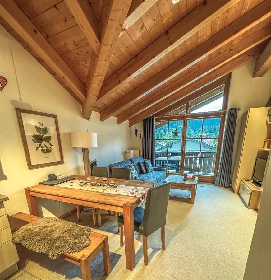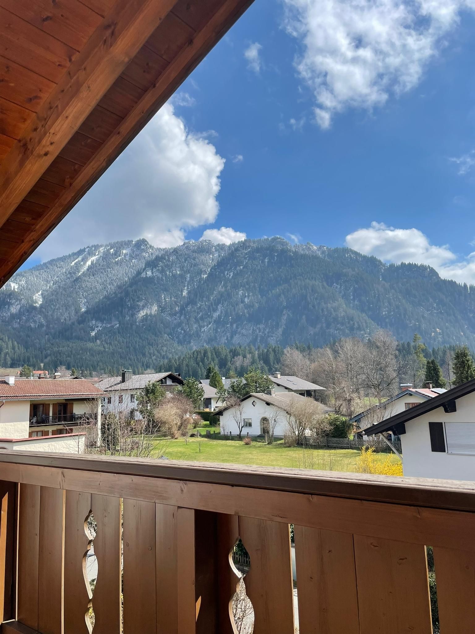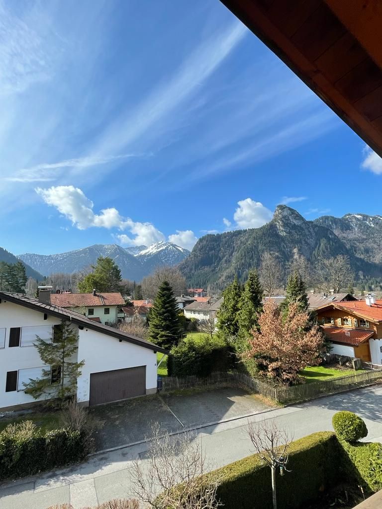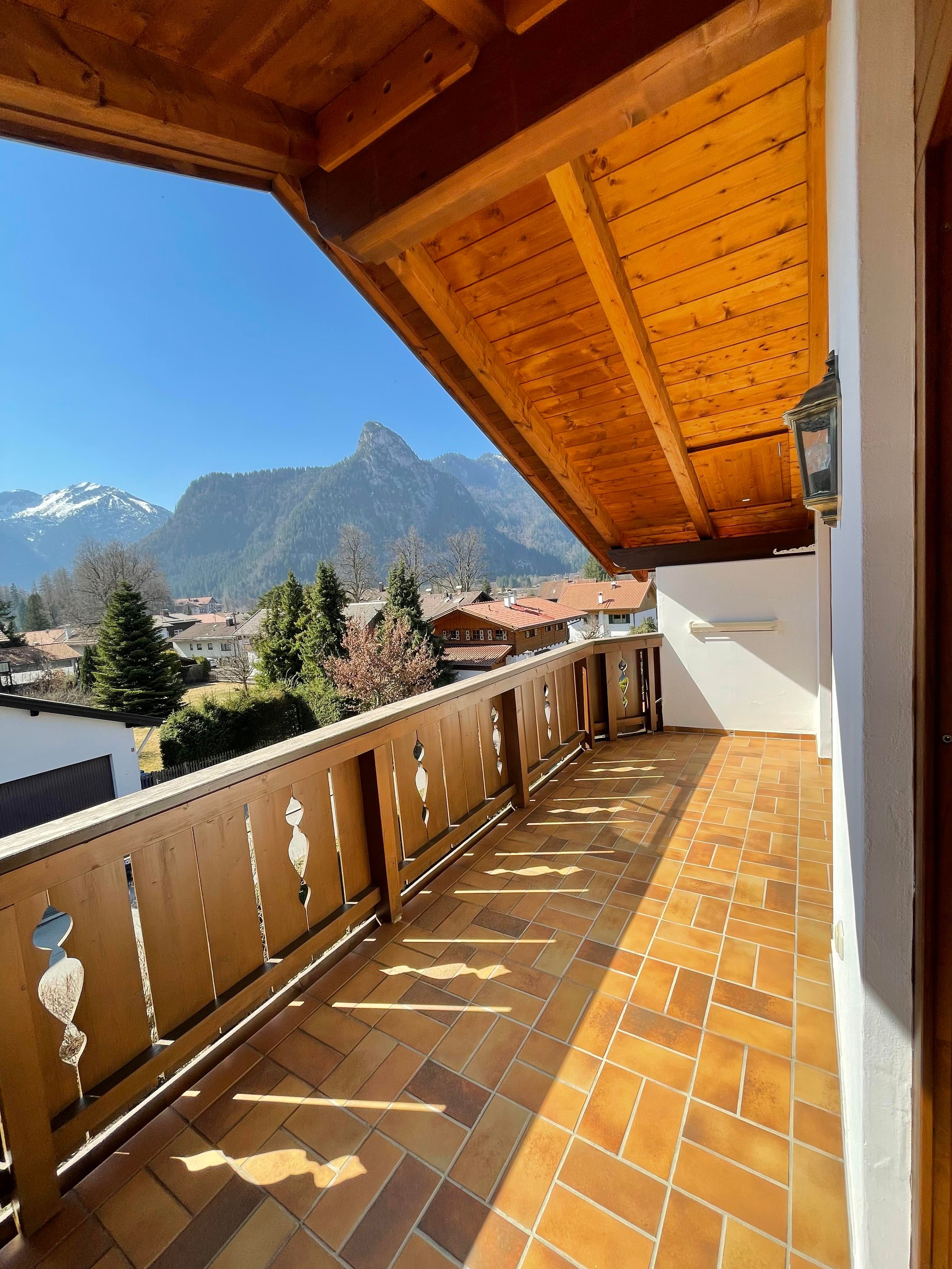 Die helle und ruhig gelegene 2-Zi Dachgeschoss-Whg. mit großem sonnigen Süd/West-Balkon mit herrlicher Aussicht auf die Ammergauer Bergwelt.