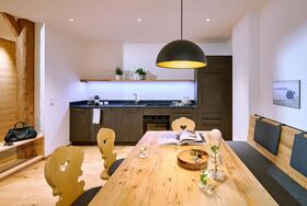 • Hochwertig ausgestattete Küche mit BORA-Kochfeld (Induktion), Backofen, Kühlschrank mit Gefrierfach, Geschirrspüler, Nespresso Kaffeemaschine, Wasserkocher, Toaster und Eierkocher