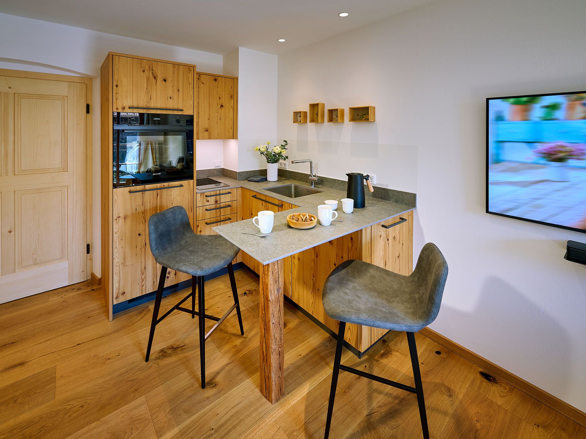 • Stilvoller Wohnbereich mit gemütlichen Sesseln, Smart-TV und Bose-Soundbar