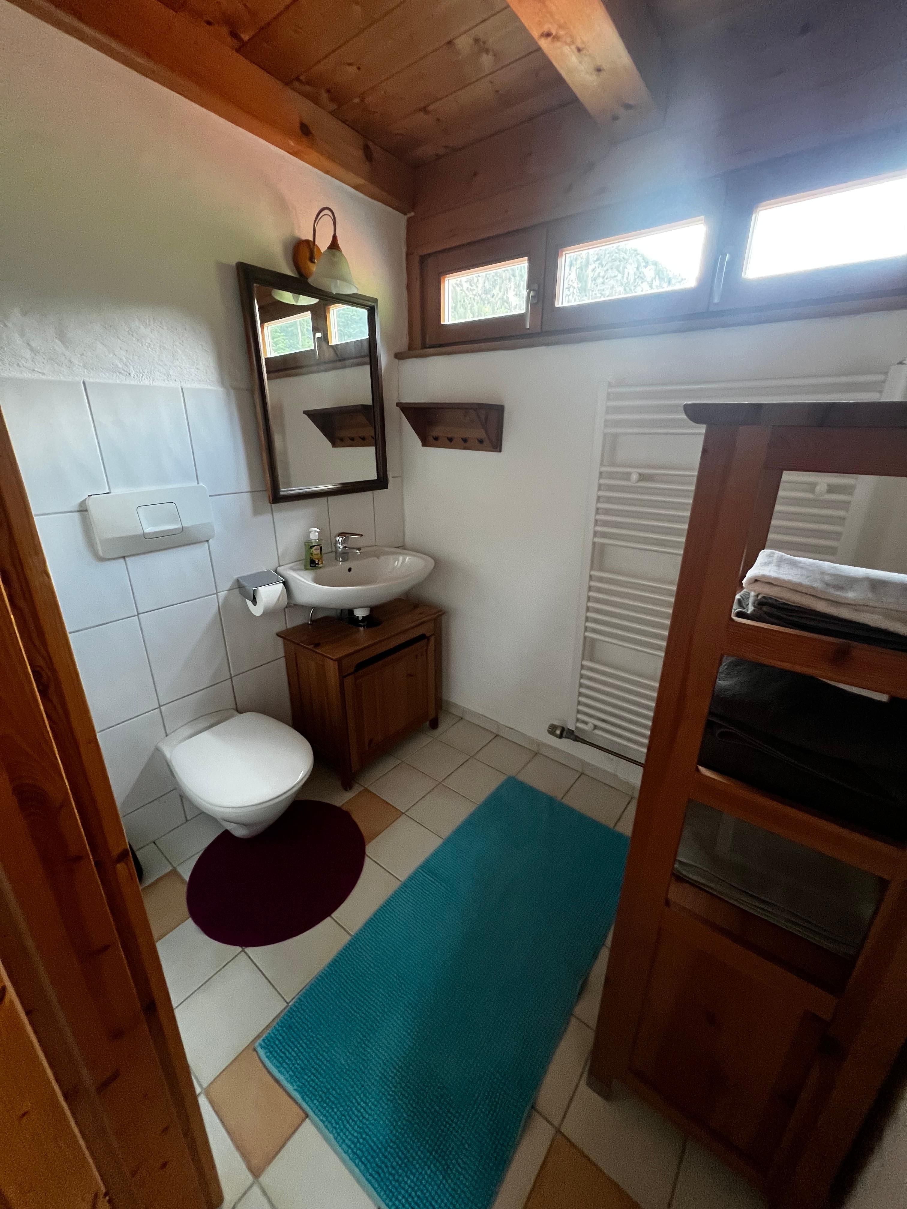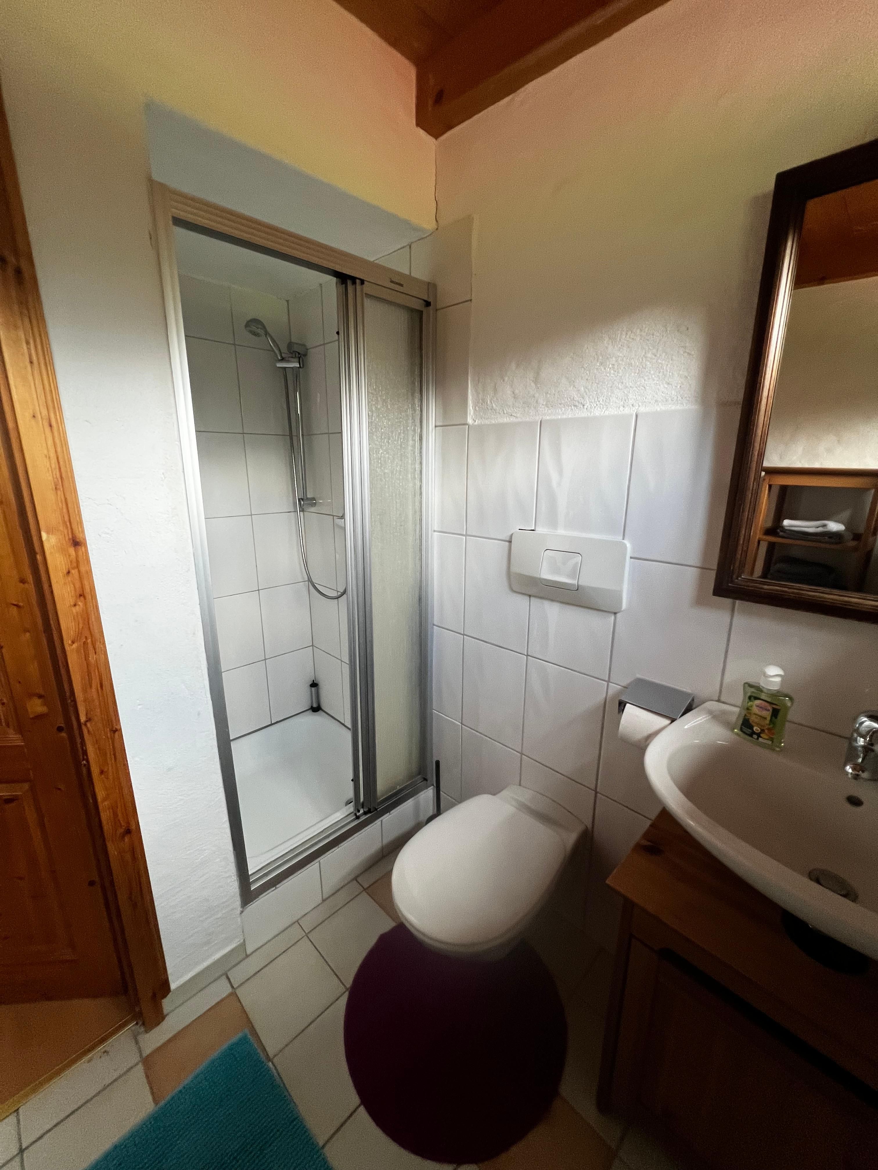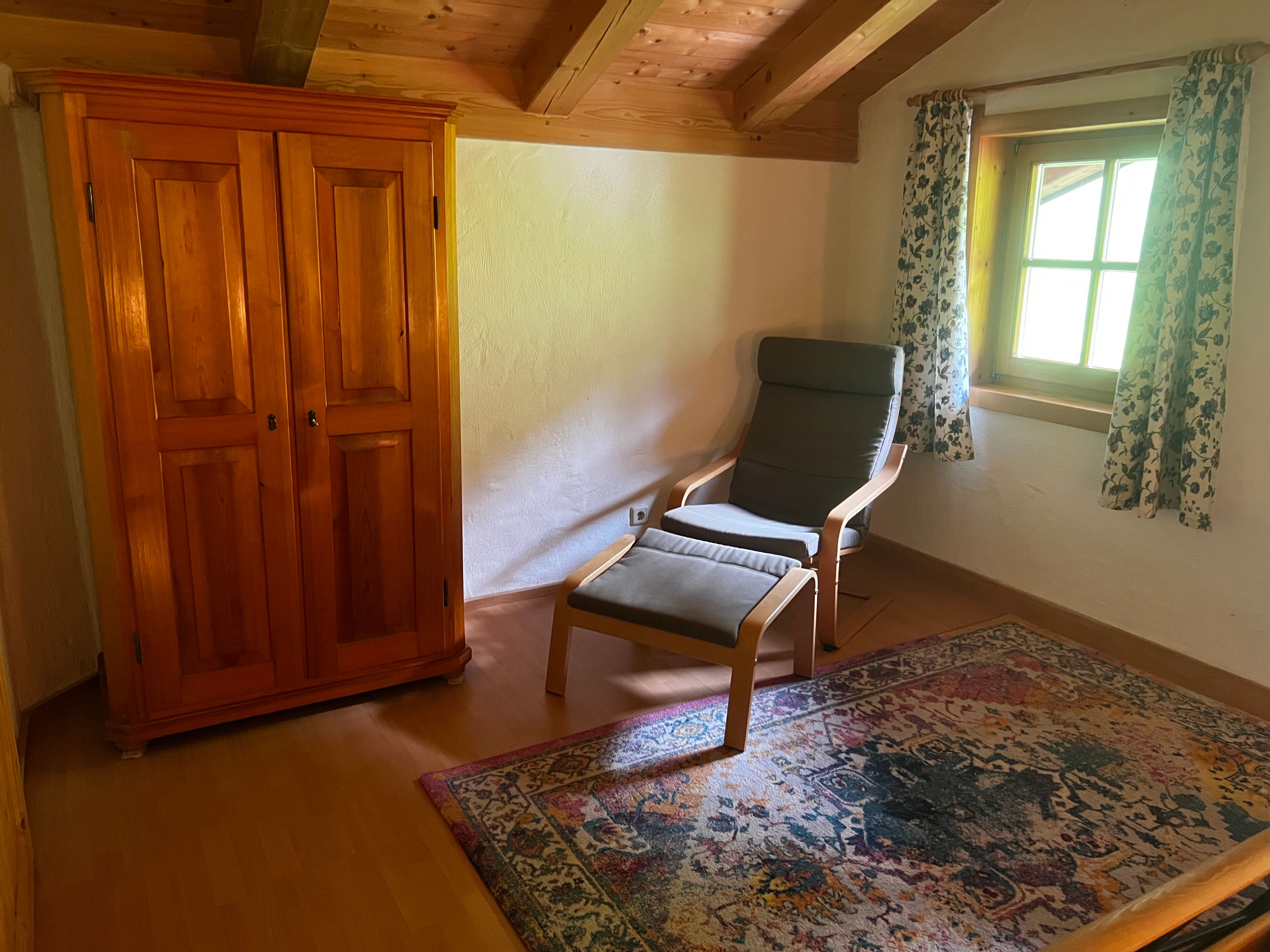 Die Ferienwohnung Watzmann bietet Platz für max. 3 Personen. Die Wohnung befindet sich im zweiten Stock unseres Hauses. Da zu dieser Ferienwohnung eine etwas steile Zugangstreppe führt, ist sie eher für jüngere Gäste geeignet. Sie besteht aus einer großen Wohnküche, einem Schlafzimmer mit Doppelbett, einem Zimmer mit Einzelbett und einem Bad (inkl. WC und Dusche).