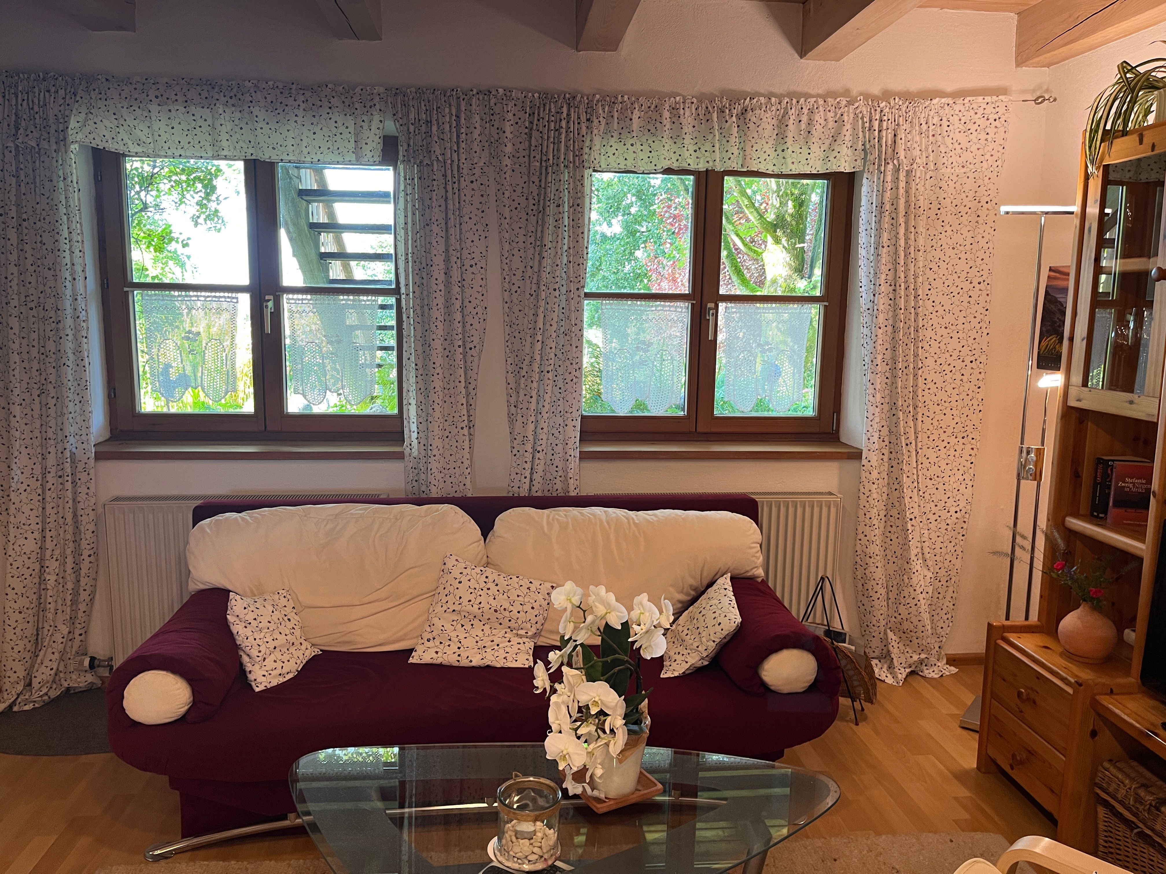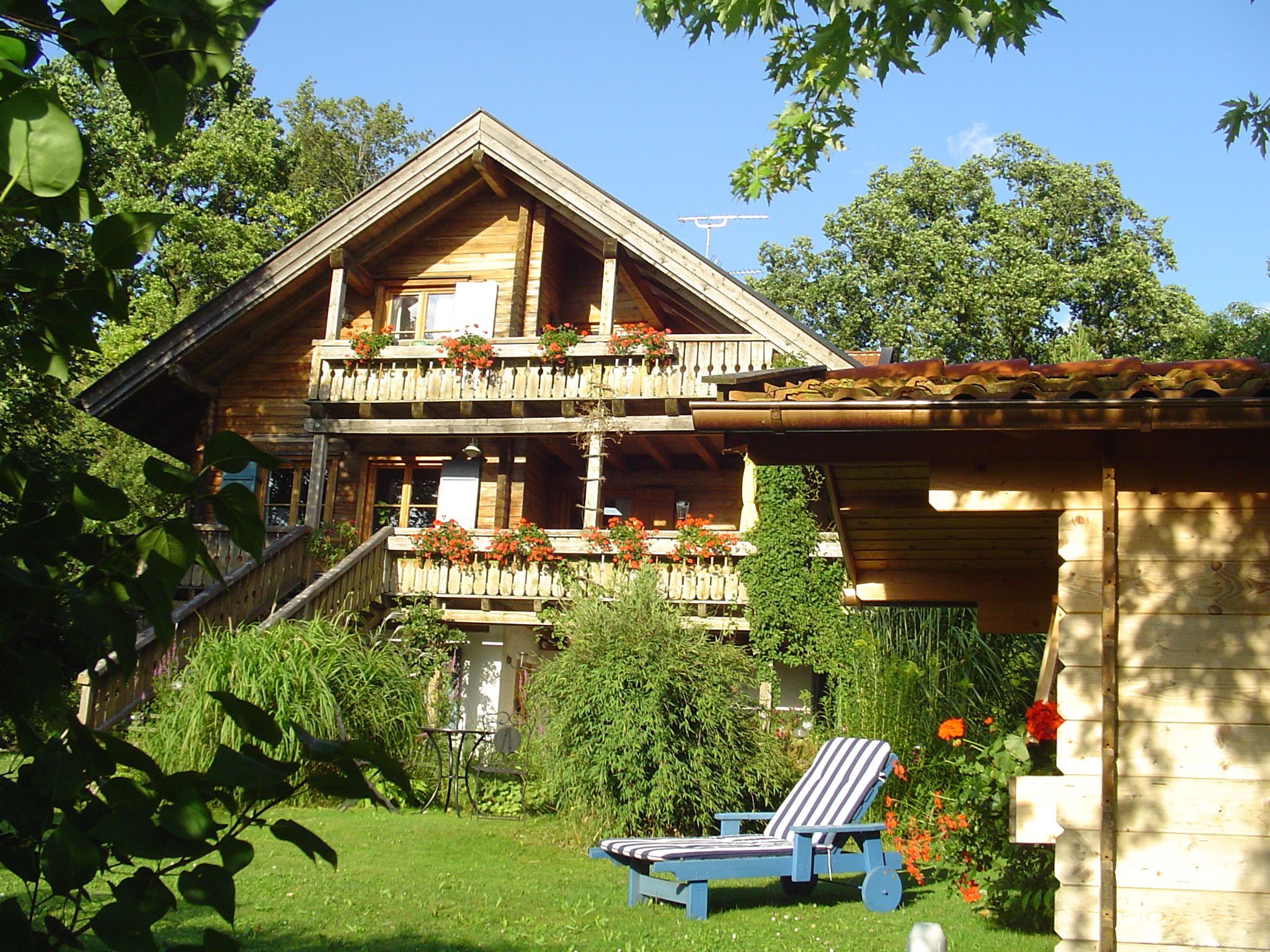 Das 45qm große geräumige Ferienappartement liegt idyllisch am Ortsrand von Grafrath im Landkreis Fürstenfeldbruck und befindet sich in einem bayrischen Holzblockhaus. Rund um das Blockhaus mit seiner besonderen Atmosphäre erwartet Sie ein Gartenidyll mit Teich und grünen Oasen zwischen Blumen, Bäumen und hohen Gräsern. Von der Ferienwohnung haben Sie direkten Zugang zu diesem Bereich.