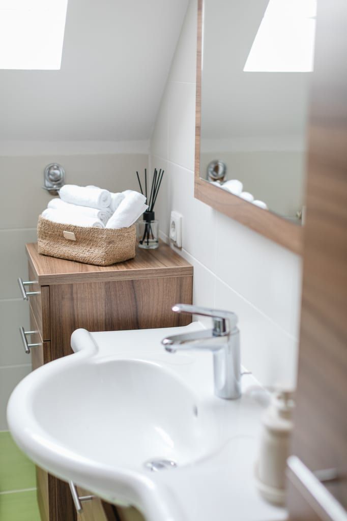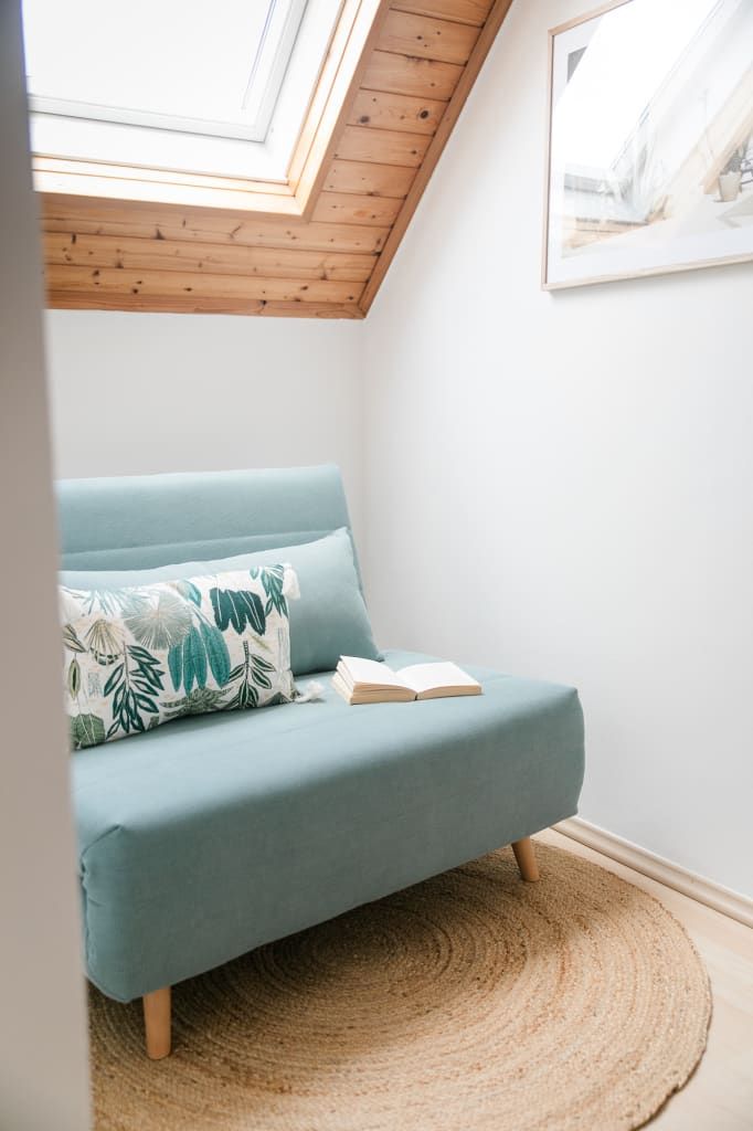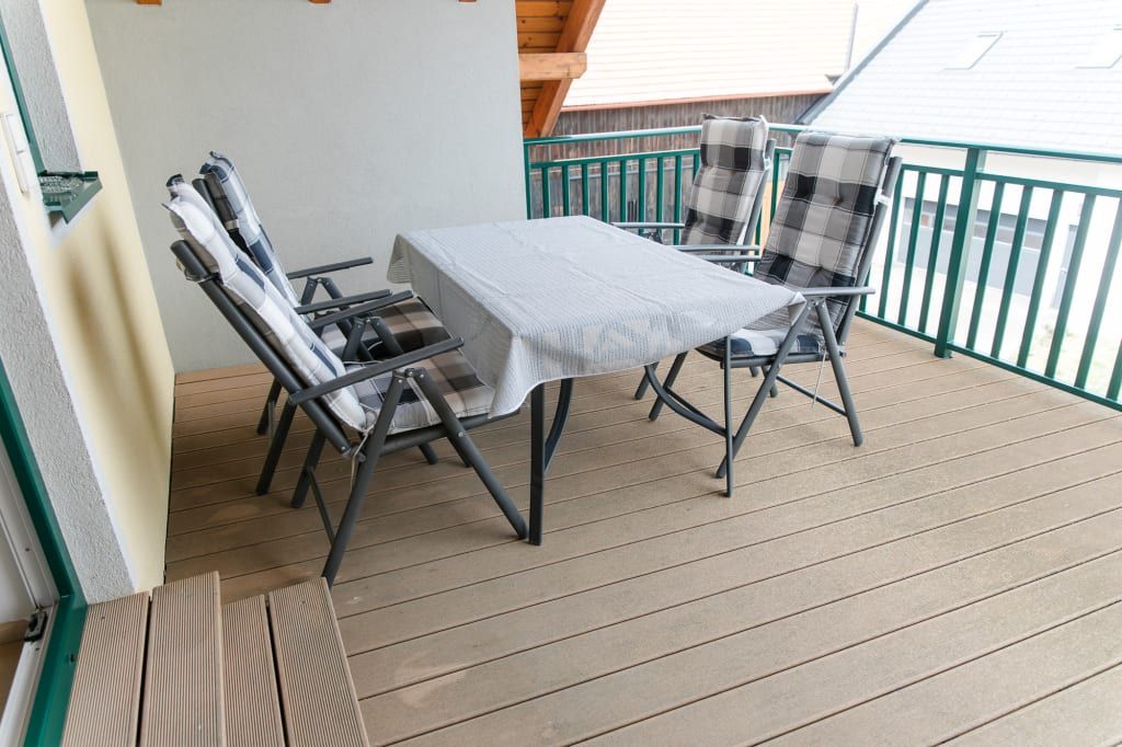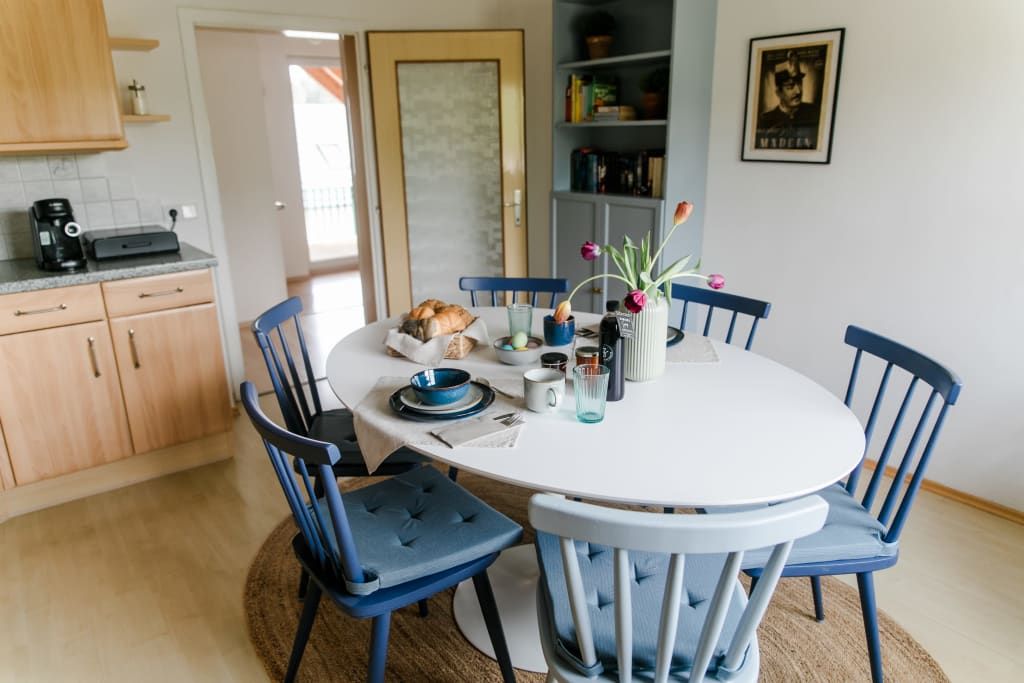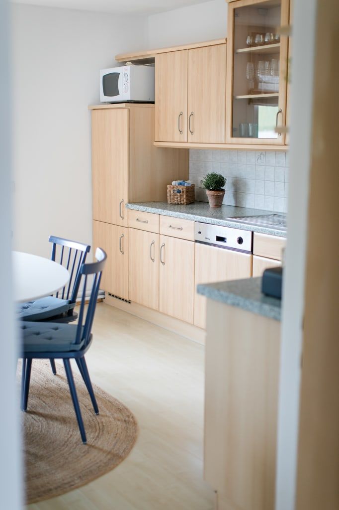 Zwei gemütliche Schlafzimmer mit Doppelbetten, eine voll ausgestattete Küche, ein helles Badezimmer mit Dusche sowie eine eigene Dachterrasse schaffen Raum für Erholung und schöne gemeinsame Stunden. Eine kleine Leseecke, Bücher, Spiele und WLAN sorgen auch bei Schlechtwetter für entspannte Abwechslung.