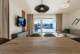 Die großzügige Wohnung im Aparthotel Alpine Suite Spot Bad Mitterndorf mit Fertigstellung im Dezember 2024 ist an Luxus kaum zu übertreffen. Das Apartment im ersten Stock hat ein Schlafzimmer mit Doppelbett, ein Badezimmer und eine große Wohnküche mit einer Schlafcouch für 2 Personen. Zusätzlich gibt es eine Terrasse mit Möbeln und Blick auf die Berge sowie einen Freistellplatz vor dem Haus. Die Küche ist voll ausgestattet. Wer nicht mit dem Auto kommt, hat eine ideale Bus- und Bahnanbindung in die Region und direkt zum Skigebiet Tauplitz. Der Check-in erfolgt flexibel mit einem Schlüsselcode. Hier kommt niemand zu kurz, egal ob beim Skiurlaub oder bei einer Auszeit mit der Familie.