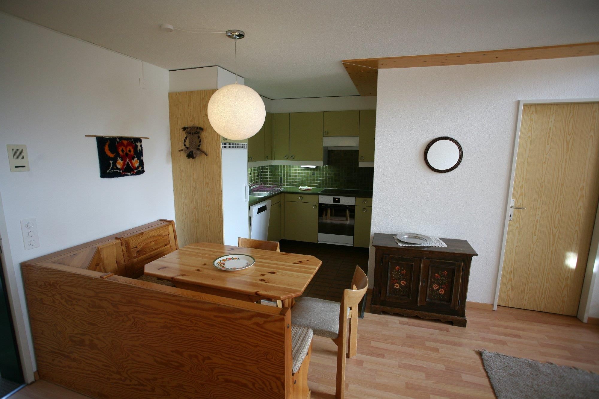 Die Maisonettewohnung ist sehr gut eingerichtet. Zur Wohnung gehört eine grosse Einbauküche mit grossem Kühlschrank u. Gefrierfach, Geschirrspüler, Bad/WC, Der Wohnraum ist mir Parkett ausgelegt. Im Obergeschoss: 1 Schlafzimmer mit 2 Betten, Du./WC. Südbalkon und Aussenparkplatz Wohnungsausstattung: Wlan, Radio u, Sat-TV. PS: Die Wohnung kann auch mit 4 Personen (Schlafsofa für 2 Pers. im Wohnraum) belegt werden.