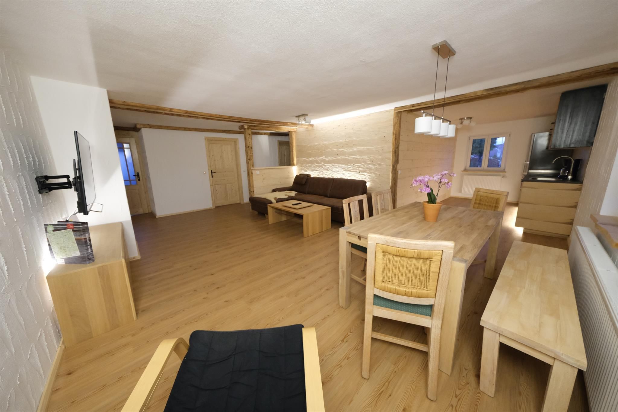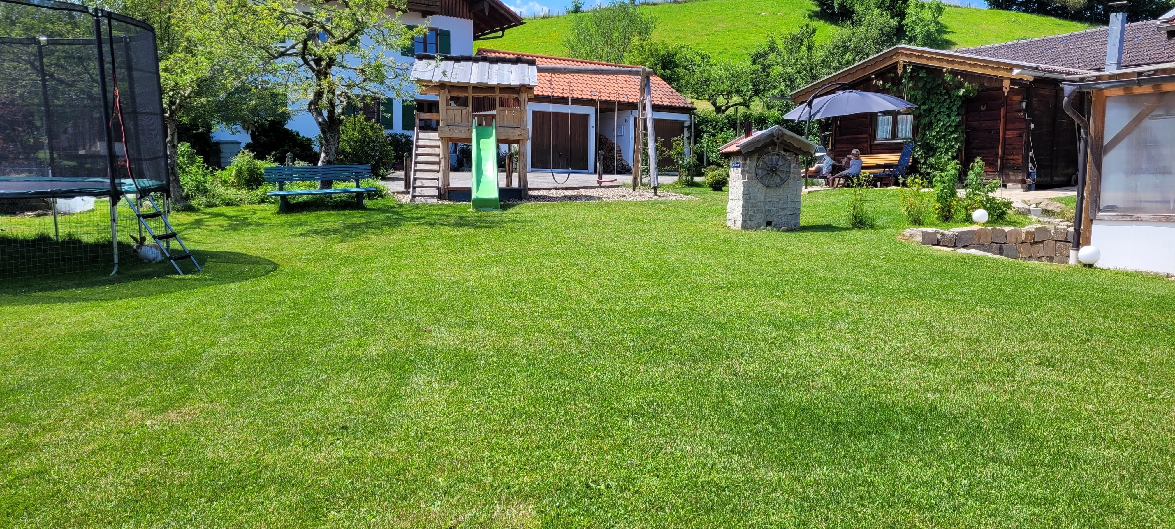 Unsere Anfang 2020 neu renovierte Ferienwohnung mit eigenem Eingang ist modern ausgestattet und liefert mit ihrer alpenländisch rustikalen Einrichtung ein besonderes Wohlfühlambiente. Im Garten bieten wir ihnen Liegen, wo sie wunderbar die herrliche Bergluft und Sonne genießen können. Auch Kinder kommen auf ihre Kosten. Sie können das große Trampolin, sowie den Spielturm mit Schaukeln und Sandkasten unserer Kinder mitbenutzen.