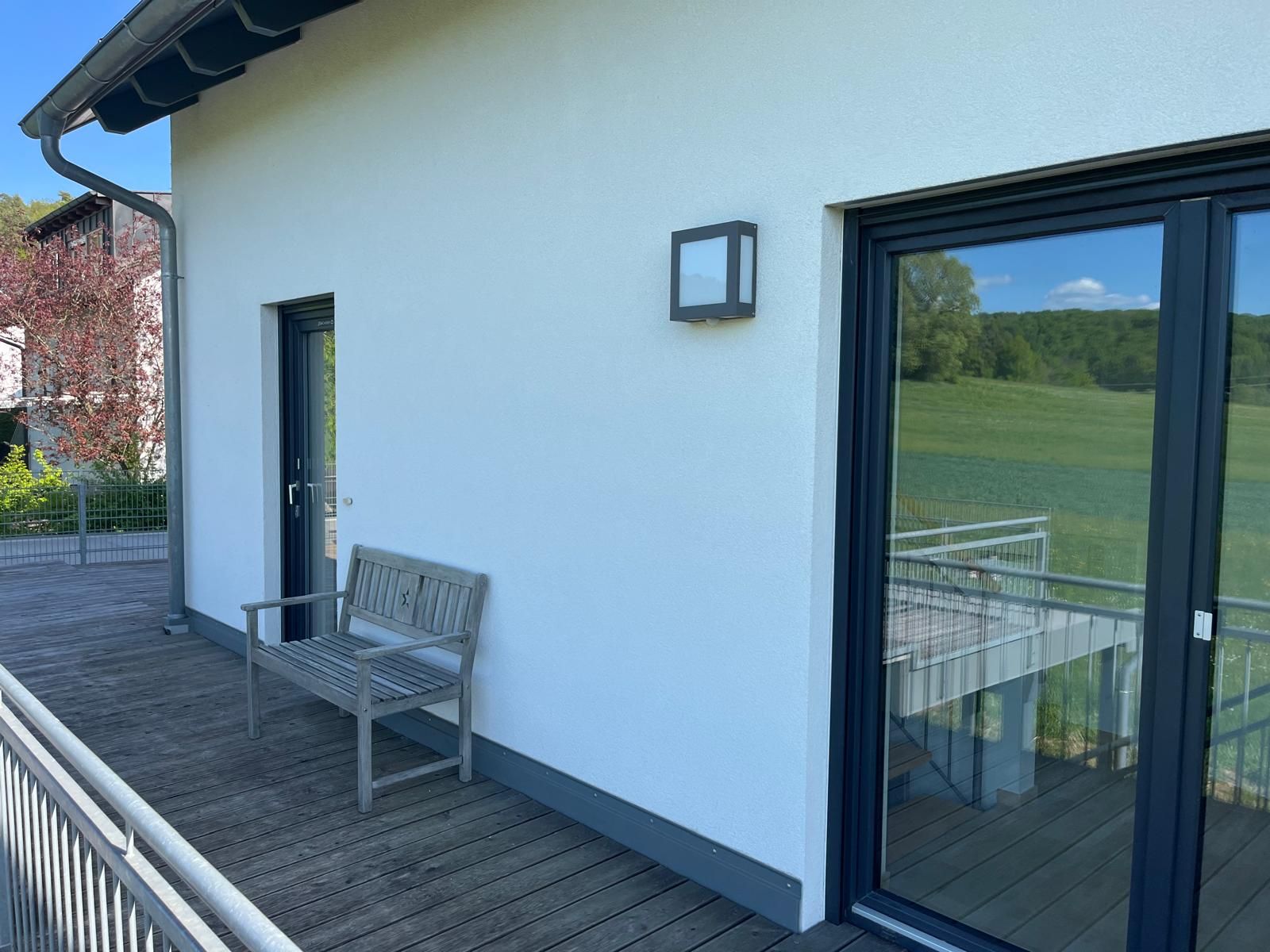 Der Ausblick von der 50 qm großen Dachterrasse bietet freie Sicht zu Wiesen und Wald. Es steht Ihnen ein kostenloser Parkplatz, sowie eine E-Ladestation (gegen Gebühr) zur Verfügung.. Überzeugen Sie sich selbst und wir sagen schon jetzt ein herzliches Willkommen in unserer Wohlfühloase!