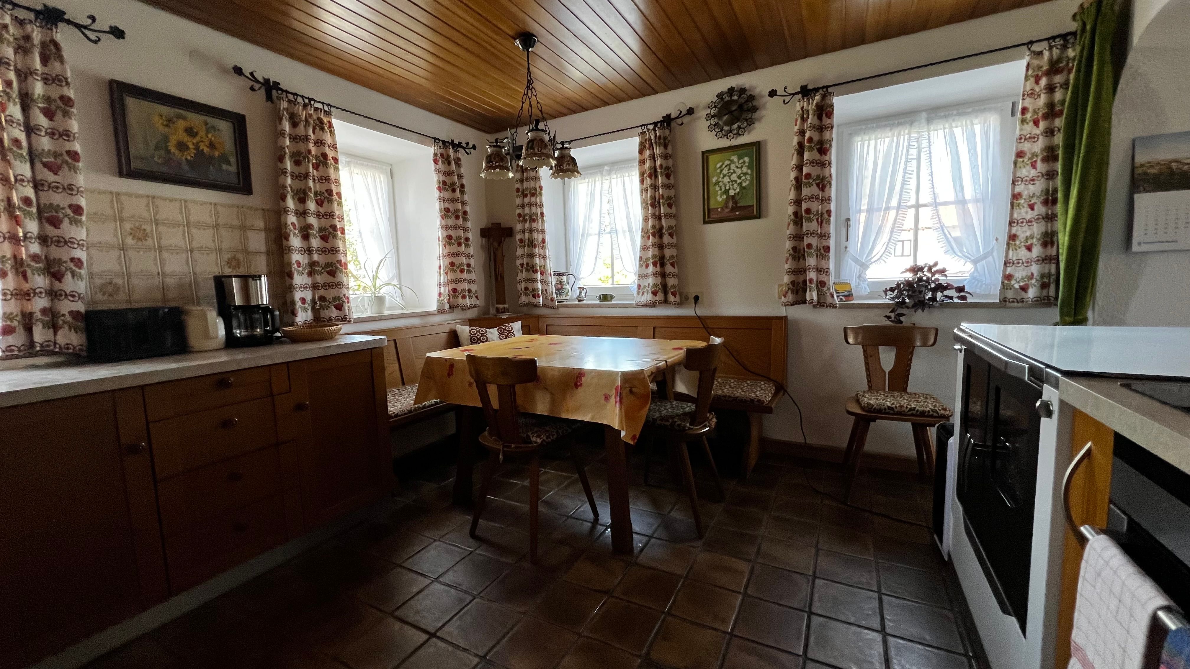 Das Stammhaus (wir nennen es auch Altbau) verfügt auf ca. 100 m² über eine gut ausgestattete Küche, eine gemütliche Bauernstube, zwei kleinere Badezimmer, ein modernes Wohnzimmer und zwei Schlafzimmer mit jeweils einem Doppelbett. Die Ferienwohnung verteilt sich auf das Erdgeschoß und das 1. Obergeschoß. Sie ist geeignet für die Belegung mit 4 Personen.