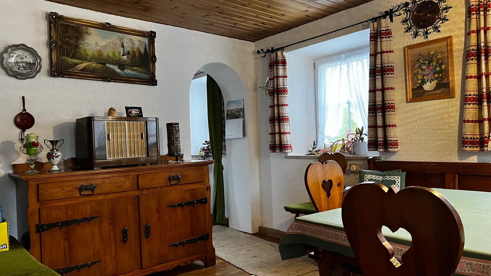 Die Wohnung im Stammhaus hat ein geräumiges Wohnzimmer, zwei Schlafzimmer und ein Bad im Obergeschoß. Im Erdgeschoß befindet sich die Küche, eine Stube und ein weiteres Bad mit Dusche.