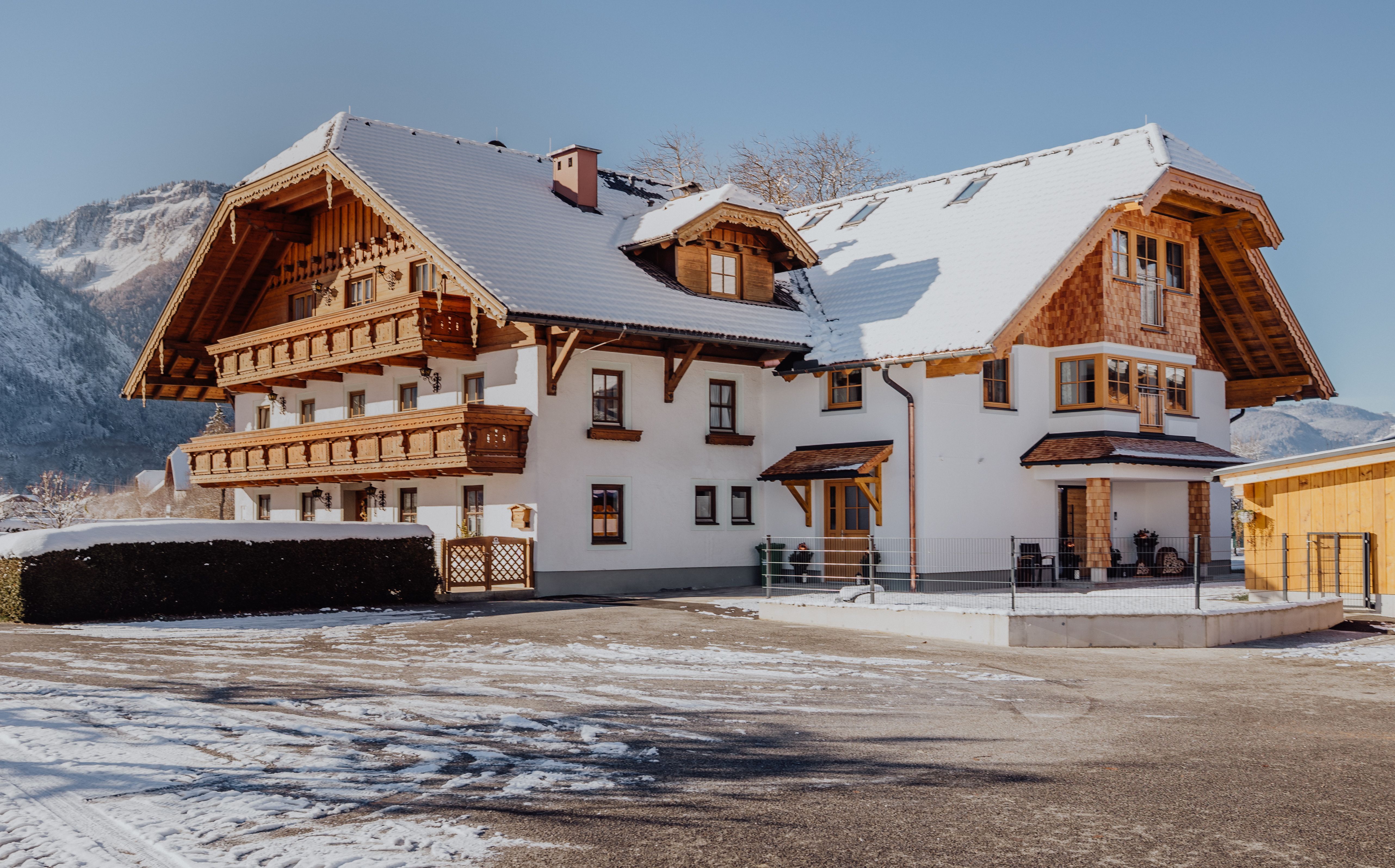 Wenn es schneit, wirds bei uns besonders gemütlich. Direkt hinter dem Haus wartet ein kleiner Rodelhügel auf Kinder Schlitten stellen wir gerne bereit. Die Postalm ist ideal für Familien: breite Pisten und viele Winterwanderwege. Wer etwas mehr will, nimmt den Skibus zum Skigebiet Dachstein-West ????. Langlaufloipen findest du mitunter hinter dem Haus - und der Wolfgangseer Advent bringt Lichter, Stimmung und besondere Momente.