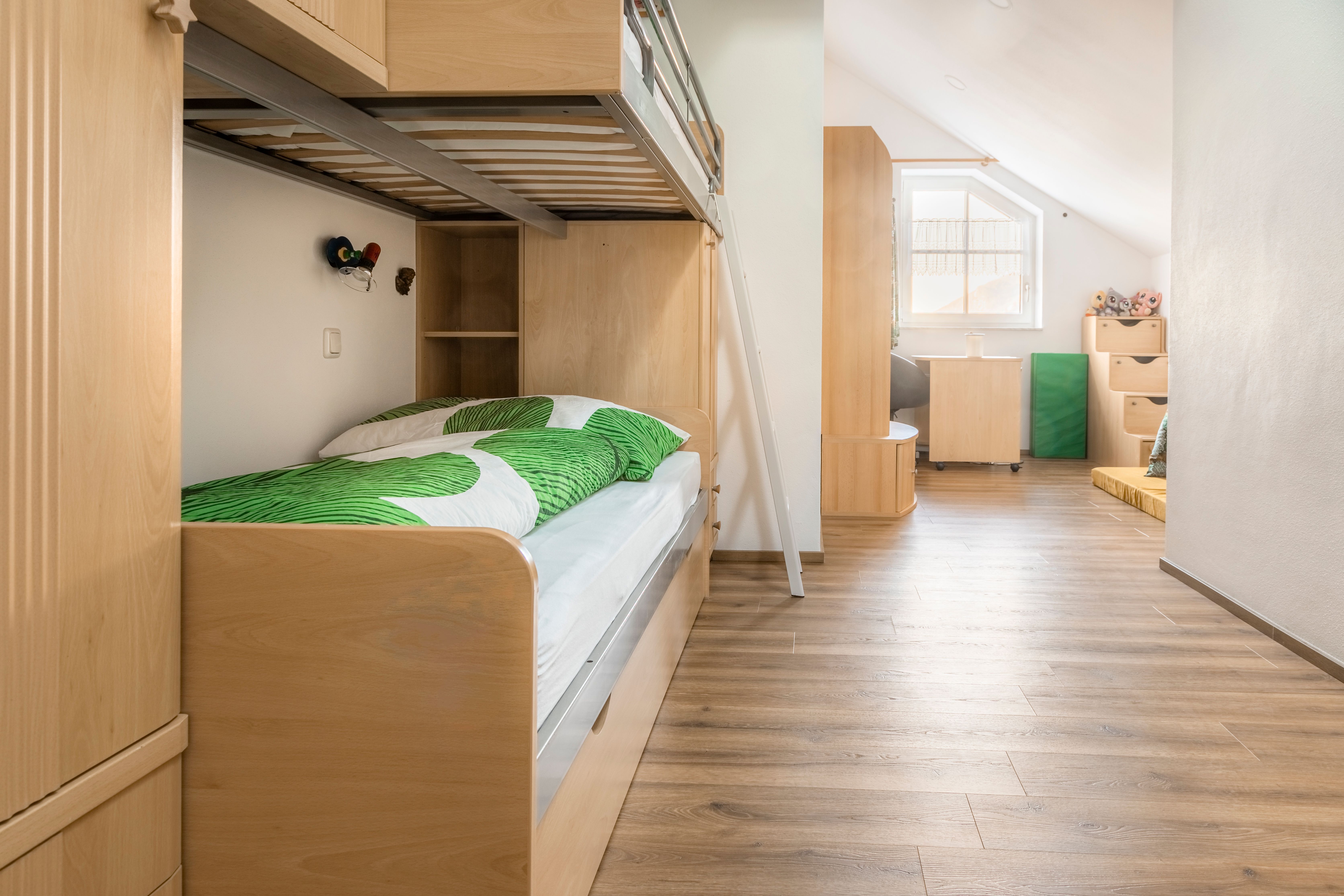 Im 2. Stock gelegen, bietet die Wohnung Bleckwand viel Platz und Gemütlichkeit. In der großen Wohnküche findest du einen Esstisch, Couch und TV ideal zum Zusammensitzen. Das Schlafzimmer ist mit einem französischen Balkon, TV, Schrank und gemütlichem Bett ausgestattet. Für die Kleinen gibt es ein eigenes Kinderzimmer mit Stockbett, Kuschelecke und Spielbereich. Das Bad bietet eine großzügige Dusche, WC, Föhn und Handtücher. Ein Ort zum Wohlfühlen für die ganze Familie.