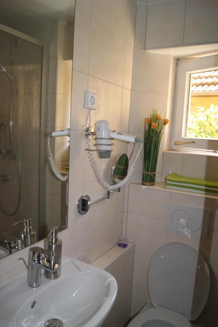 Bad/WC: Dusche; Föhn; Toilette; Waschbecken