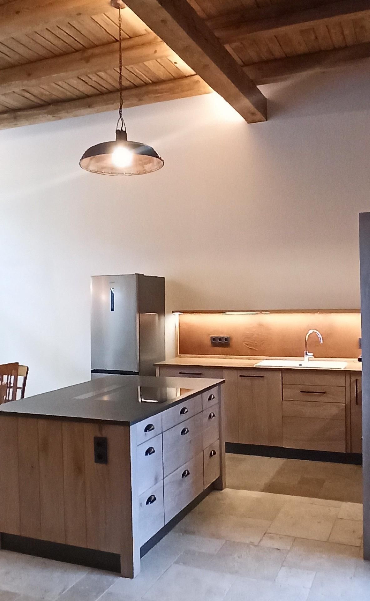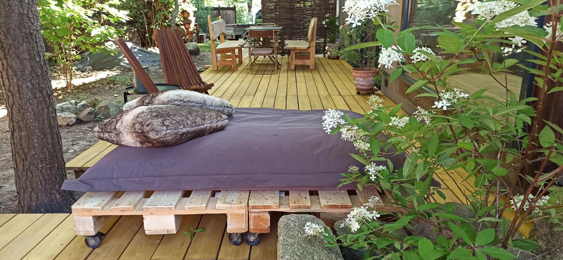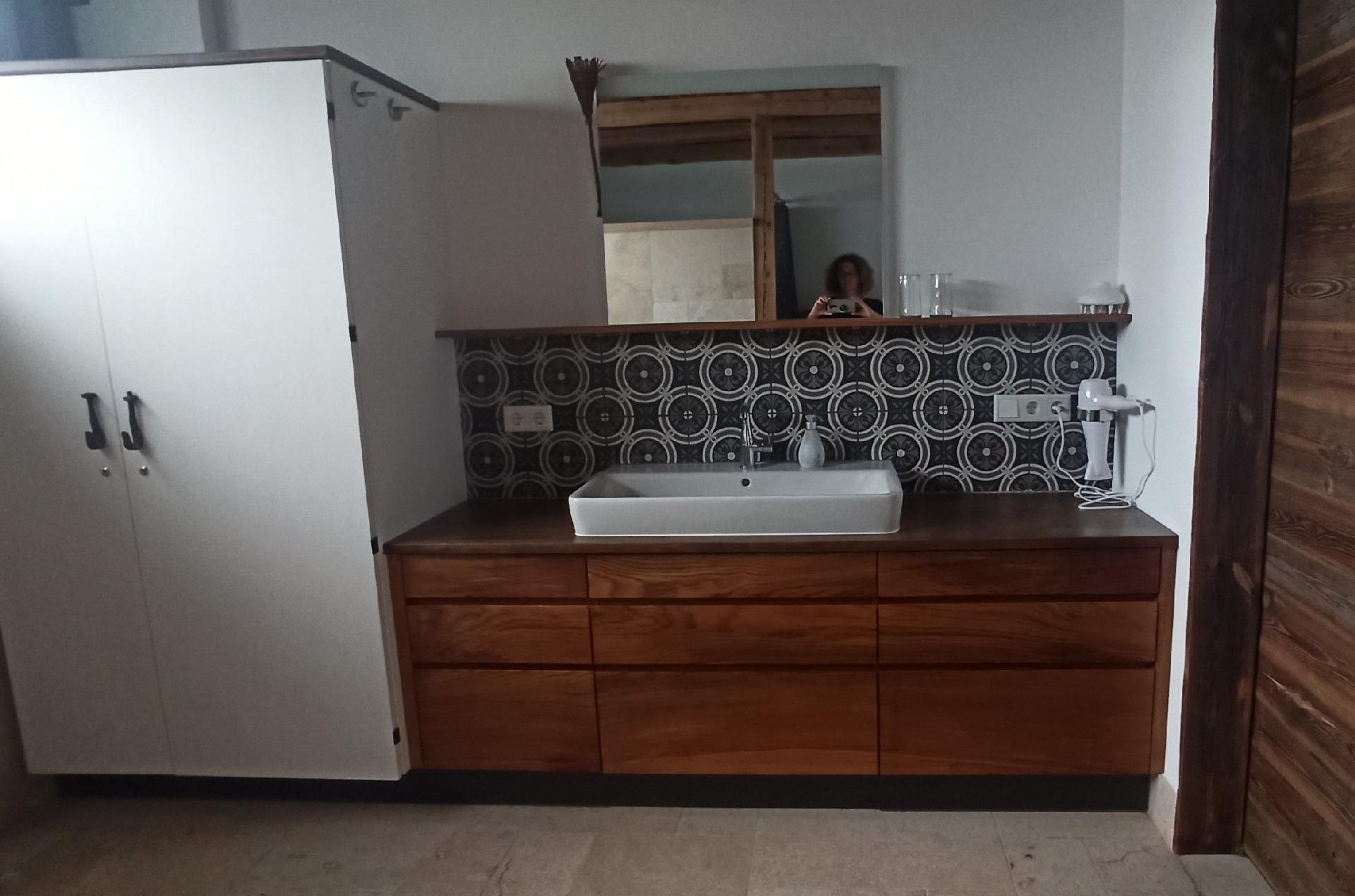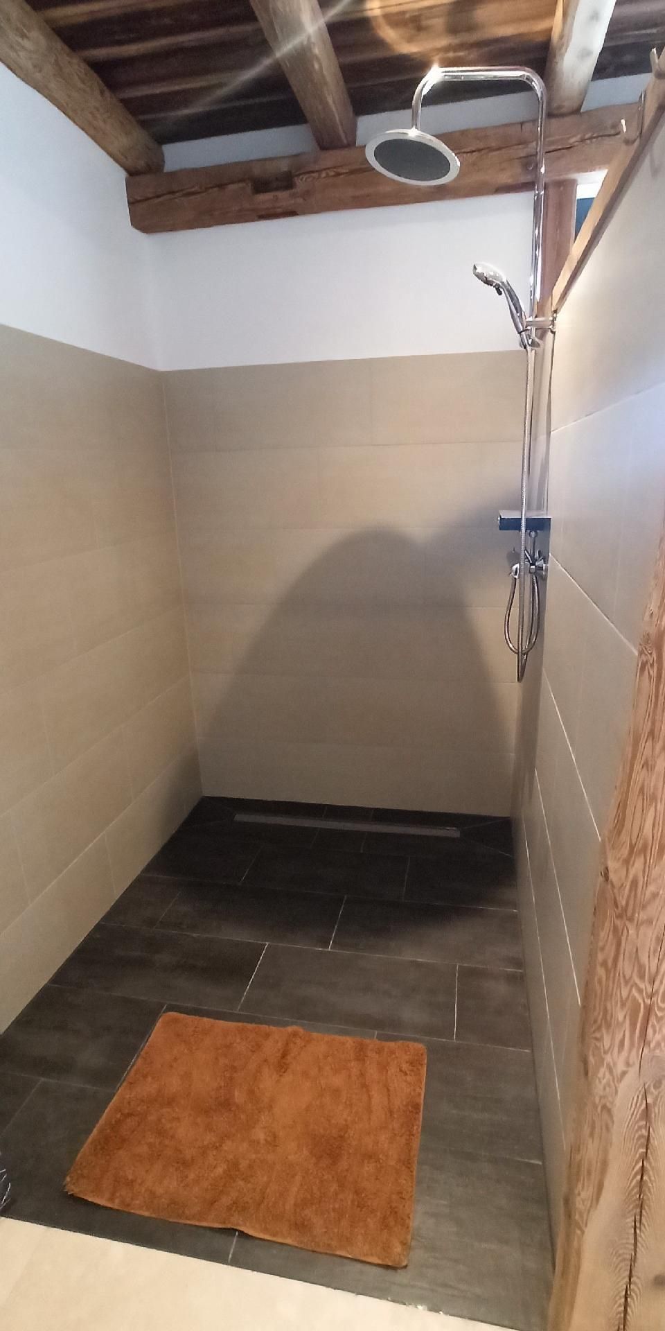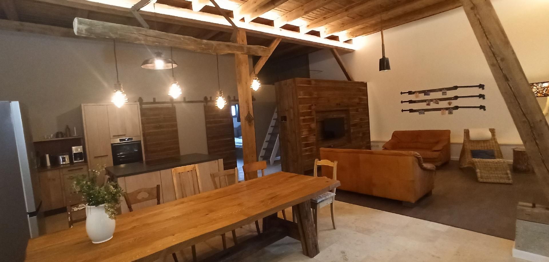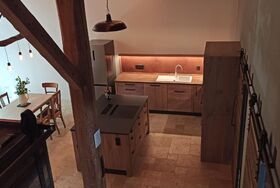 Innen überzeugt das Loft mit einer umweltschonenden Fußbodenheizung und einem biologischen Ambiente, das einzigartig gestaltet ist. Für Ihre Bequemlichkeit sorgt ein gemütliches Schlafzimmer für 2 bis 3 Personen und ein originelles Matratzenlager im niedrigen offenen Obergeschoss (1,40 m hoch), das zusätzlichen Schlafplatz für 3 Gäste bereithält. Das großzügig ausgestattete Badezimmer mit Dusche und Badewanne rundet das Wohnerlebnis ab. In der voll ausgestatteten Küche finden Sie alles, was das Herz begehrt, darunter Cerankochfeld, Spülmaschine, Wasserkocher und Filterkaffeemaschine, ergänzt durch eine praktische Waschmaschine.