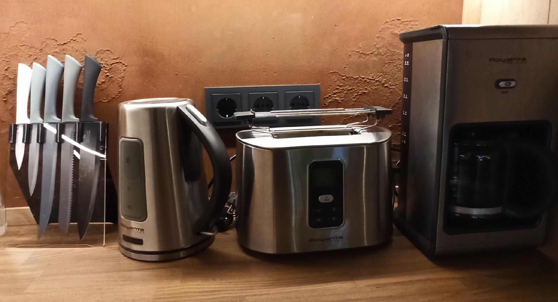 Kochen: Backofen; Ceranherd; Kaffeemaschine; Kaffeemaschine; Kühlschrank; Spülmaschine; Tiefkühlschrank; Toaster; Wasserkocher
