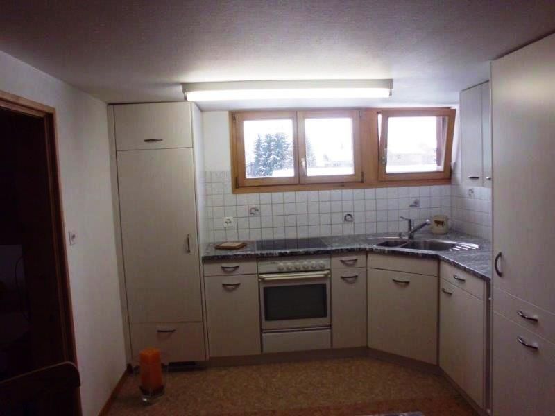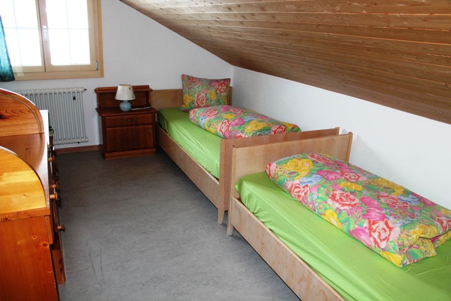3.5 Zimmerwohnung im 3. Stock mit Balkon. Wohnzimmer mit Sofabett, schöne Wohnküche, 2 Schlafzimmer: 1 Zimmer mit Doppelbett und fliessend Wasser; 1 Zimmer mit 2 Einzelbetten und fliessend Wasser. Badzimmer mit Dusche/WC. Fonduecaquelon vorhanden. Küchenwäsche vorhanden und inbegriffen, Badwäsche bitte selber mitnehmen. Bodenbelag: Laminat Böden in der ganzen Wohnung