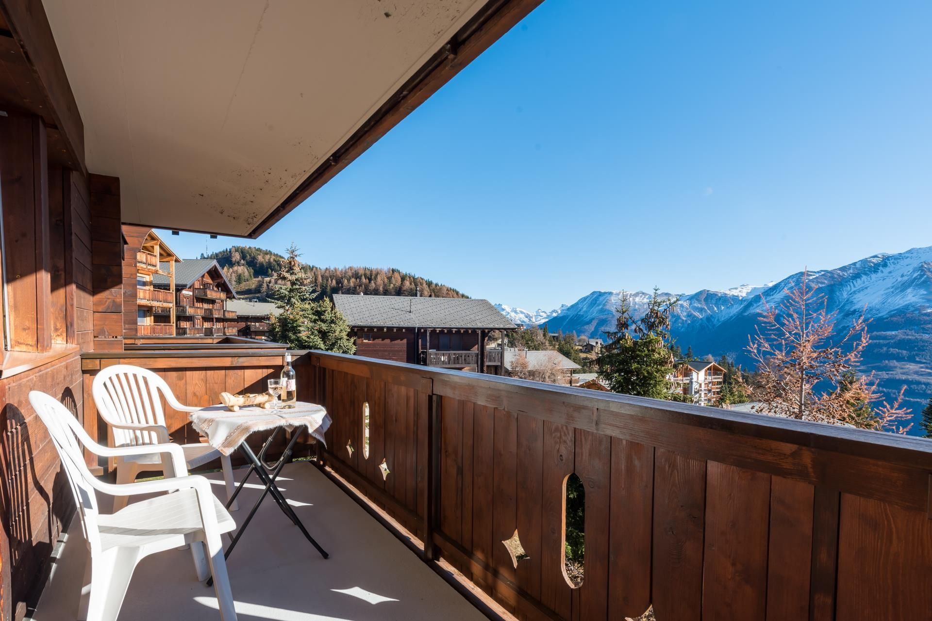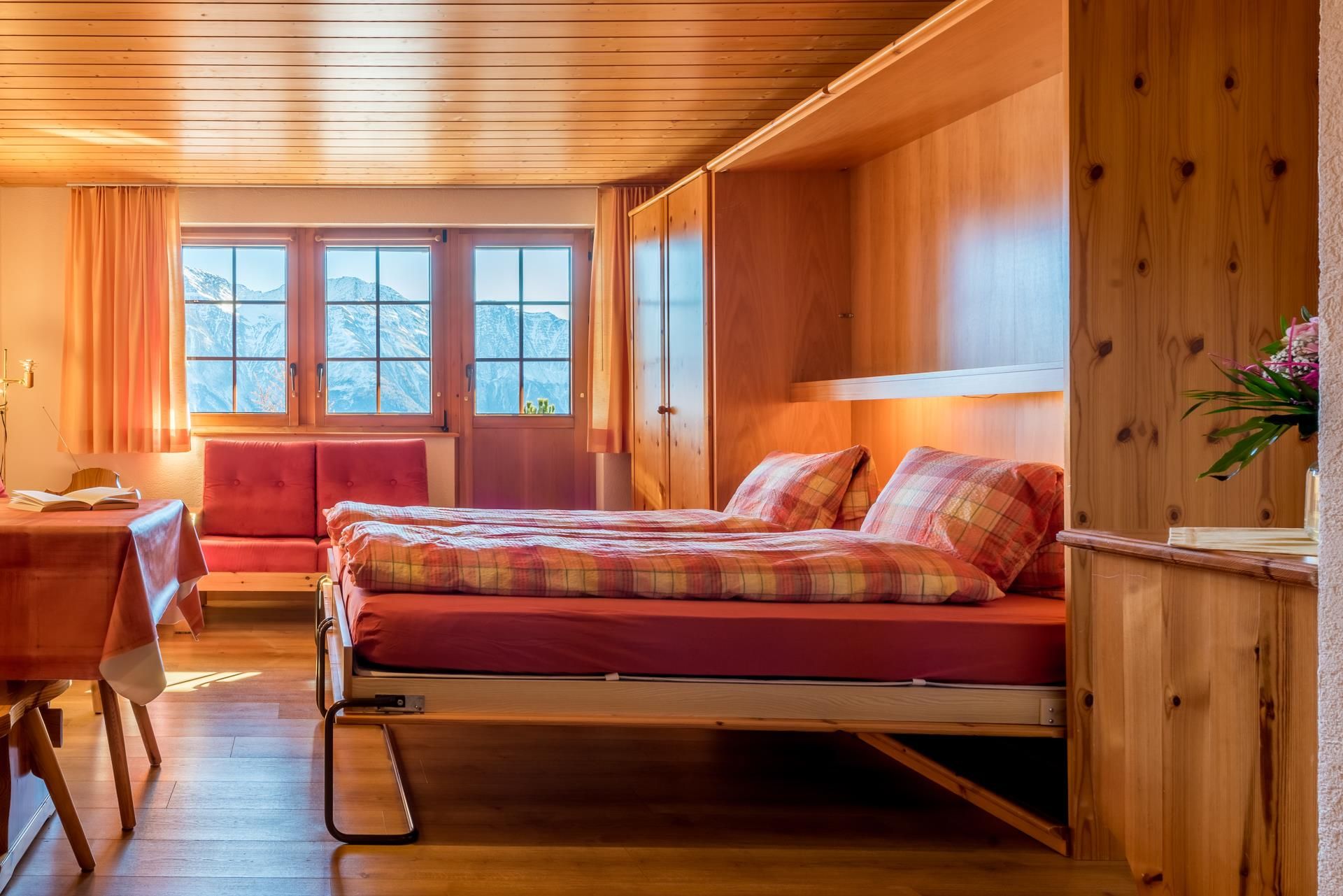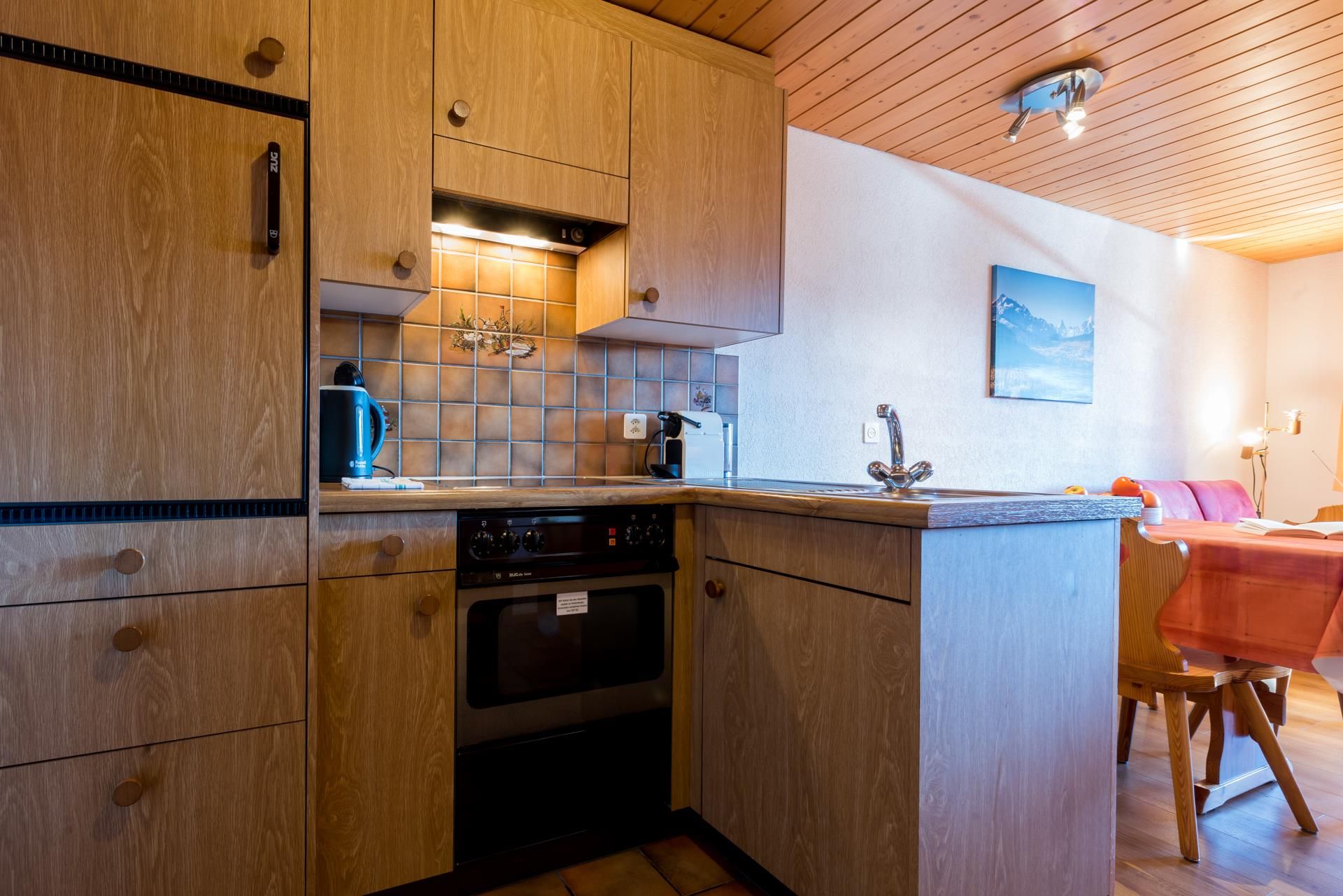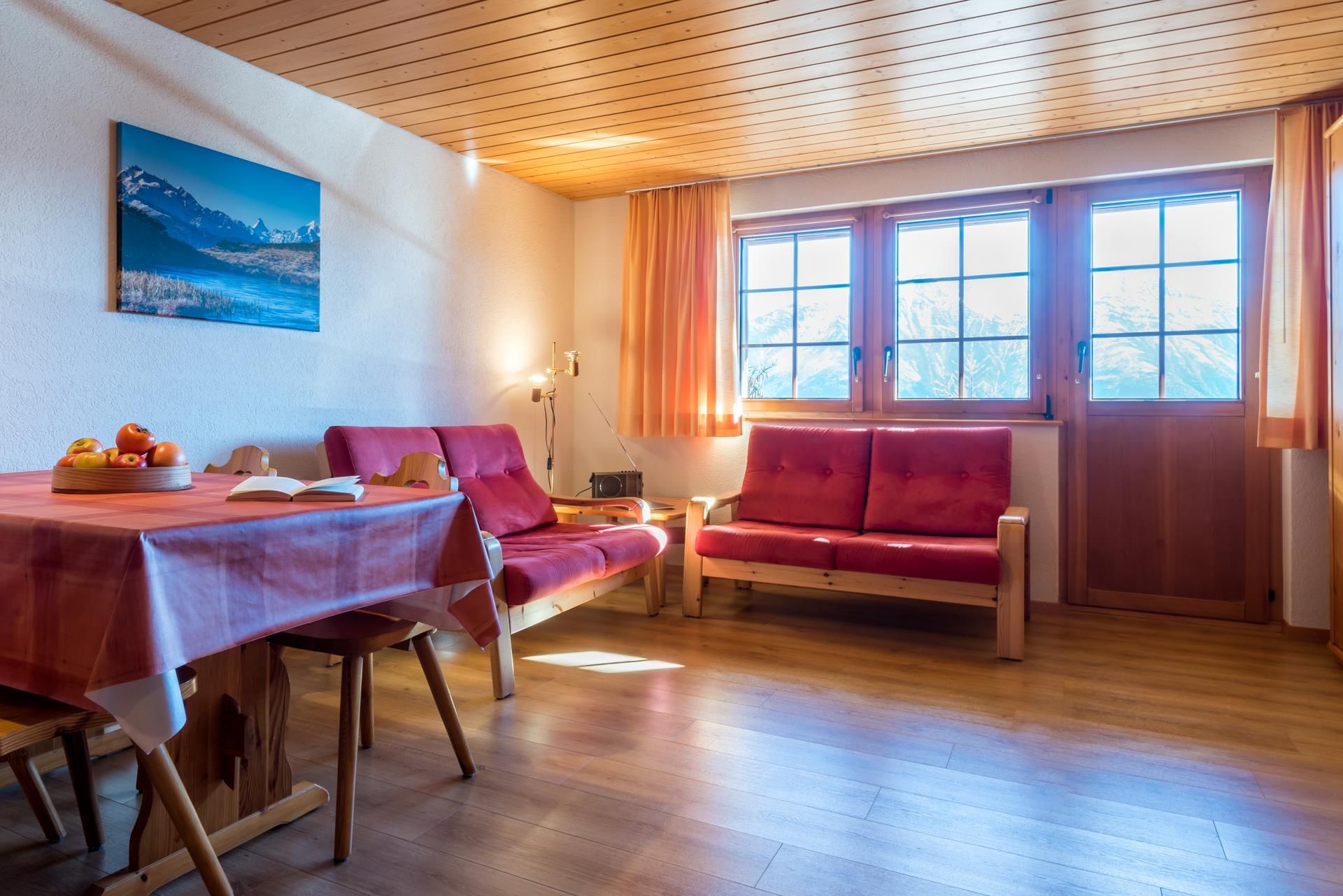 Die 2 1/2-Zimmer-Wohnung ist für 1 bis 4 Personen geeignet und verfügt über einen separaten Schlafraum sowie einen Wohnraum mit Küche und zwei Klappbetten. Ein Südbalkon bietet freien Blick auf die Walliser Viertausender. Zur Ausstattung gehören Wlan, Farbfernseher mit SAT-Anlage, Lift sowie gemeinschaftlich nutzbare Waschmaschine und Trockner. Im Winter steht ein abschliessbarer Skiraum mit moderner Schuhtrocknungsanlage und Desinfektion zur Verfügung. Im Sommer lädt eine Liegewiese mit Grillplatz zum Verweilen ein. Die Wohnung ist gepflegt, sehr sauber und rauchfrei.