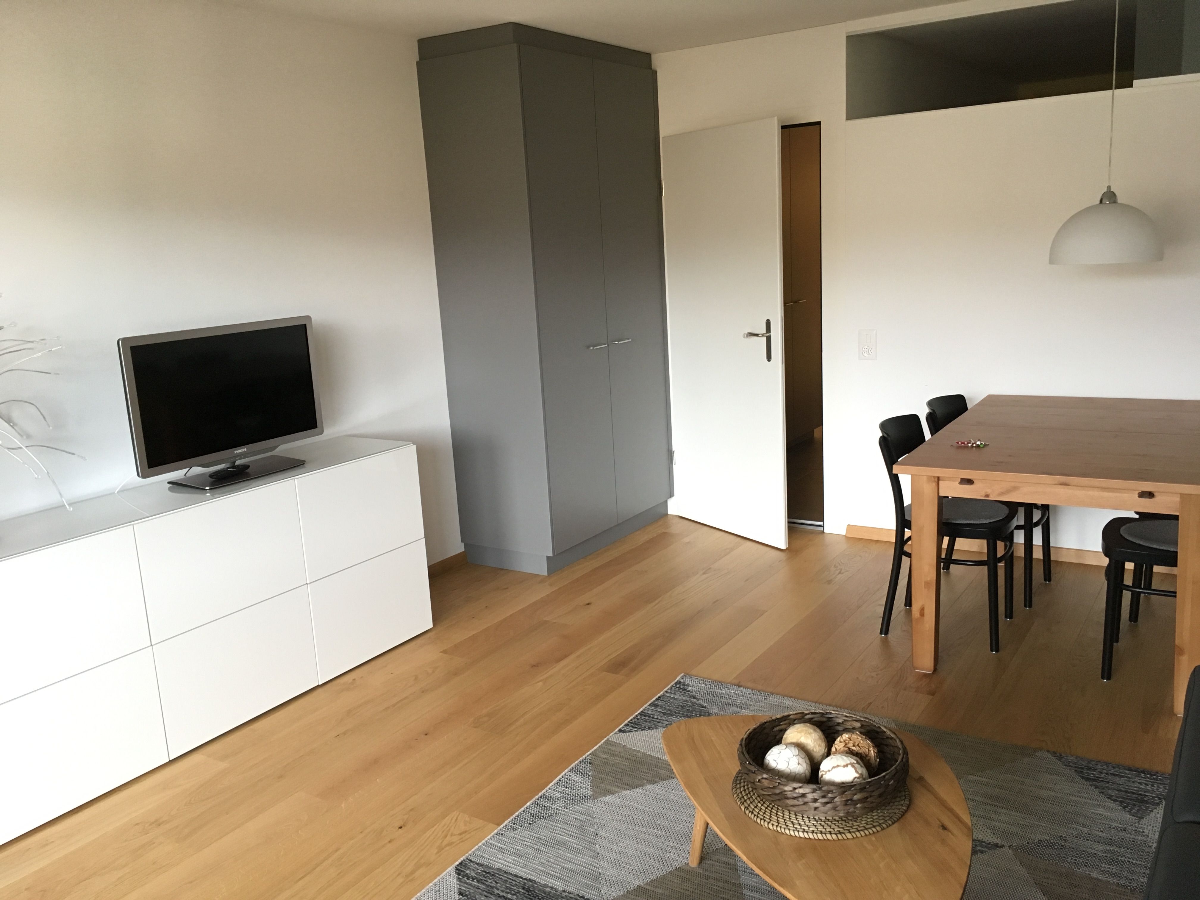 Die Wohnung hat ein modernes Wohn- Esszimmer mit einem Schlafsofa für 2 Personen. TV, Radio und W-Lan !