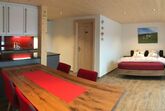 Im Erdgeschoss befindet sich das Studio. Das Studio beinhaltet einen Wohn/Essbereich, eine sehr grosszügige Küche sowie ein separates Badezimmer(Dusche/WC) für max. 2 Personen.