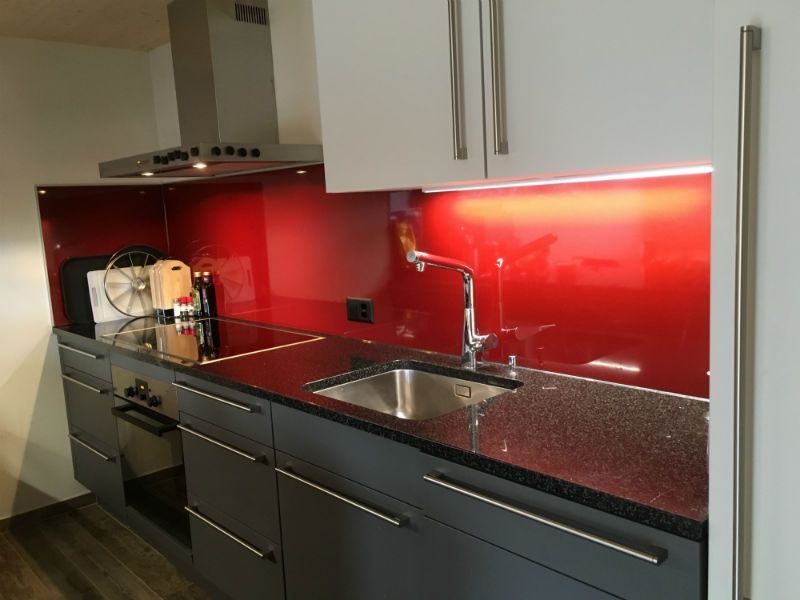 Die Küche ist komplett ausgestattet und verfügt über ein Induktion- Kochfeld, Backofen, grosser Kühlschrank, Gefrierschrank, Geschirrspülmaschine, Kaffeevollautomat inkl. Bohnen zum freien Gebrauch, Toaster, Mixer und einem Raclette- und Fondueset.Badezimmer: