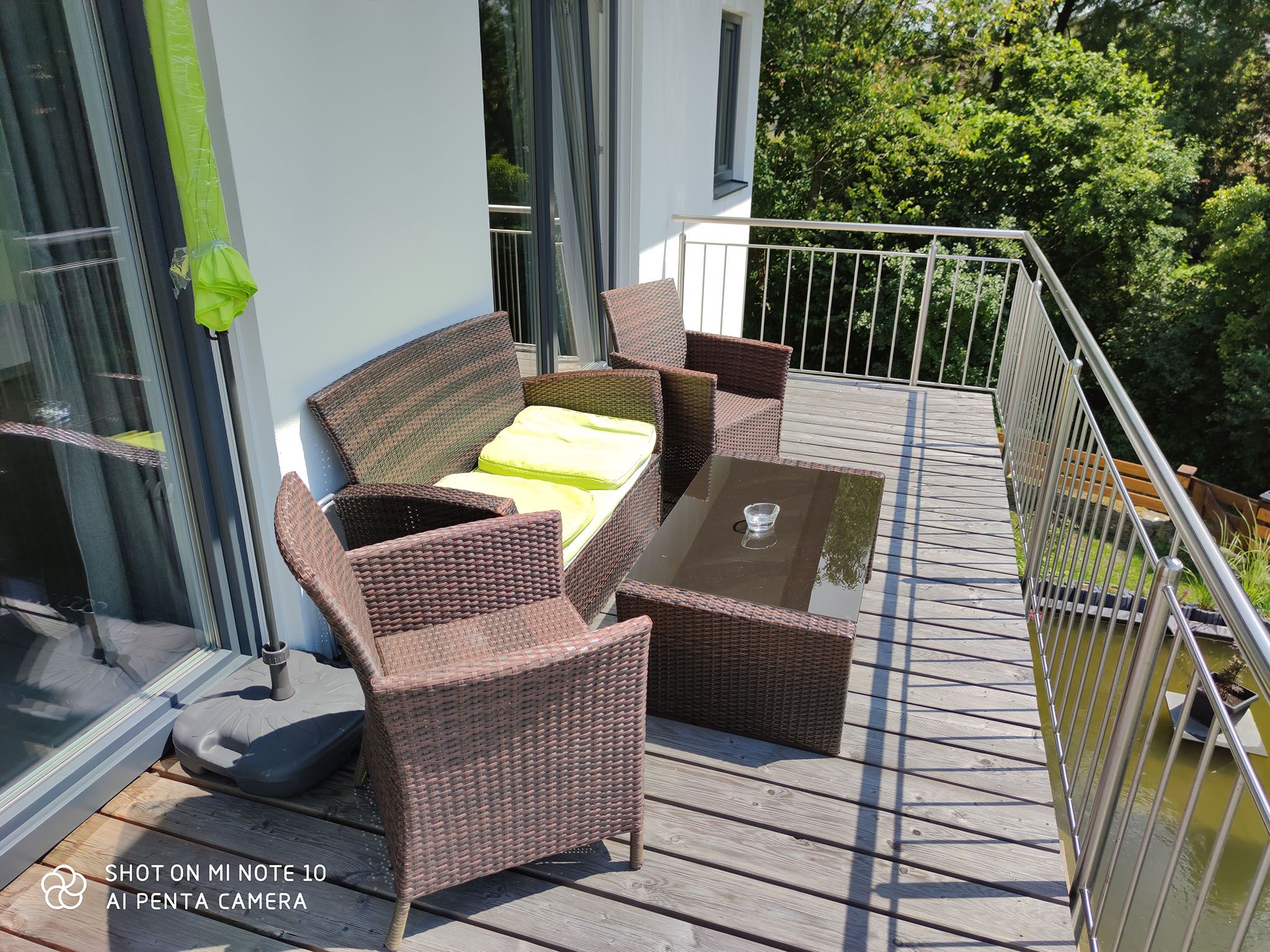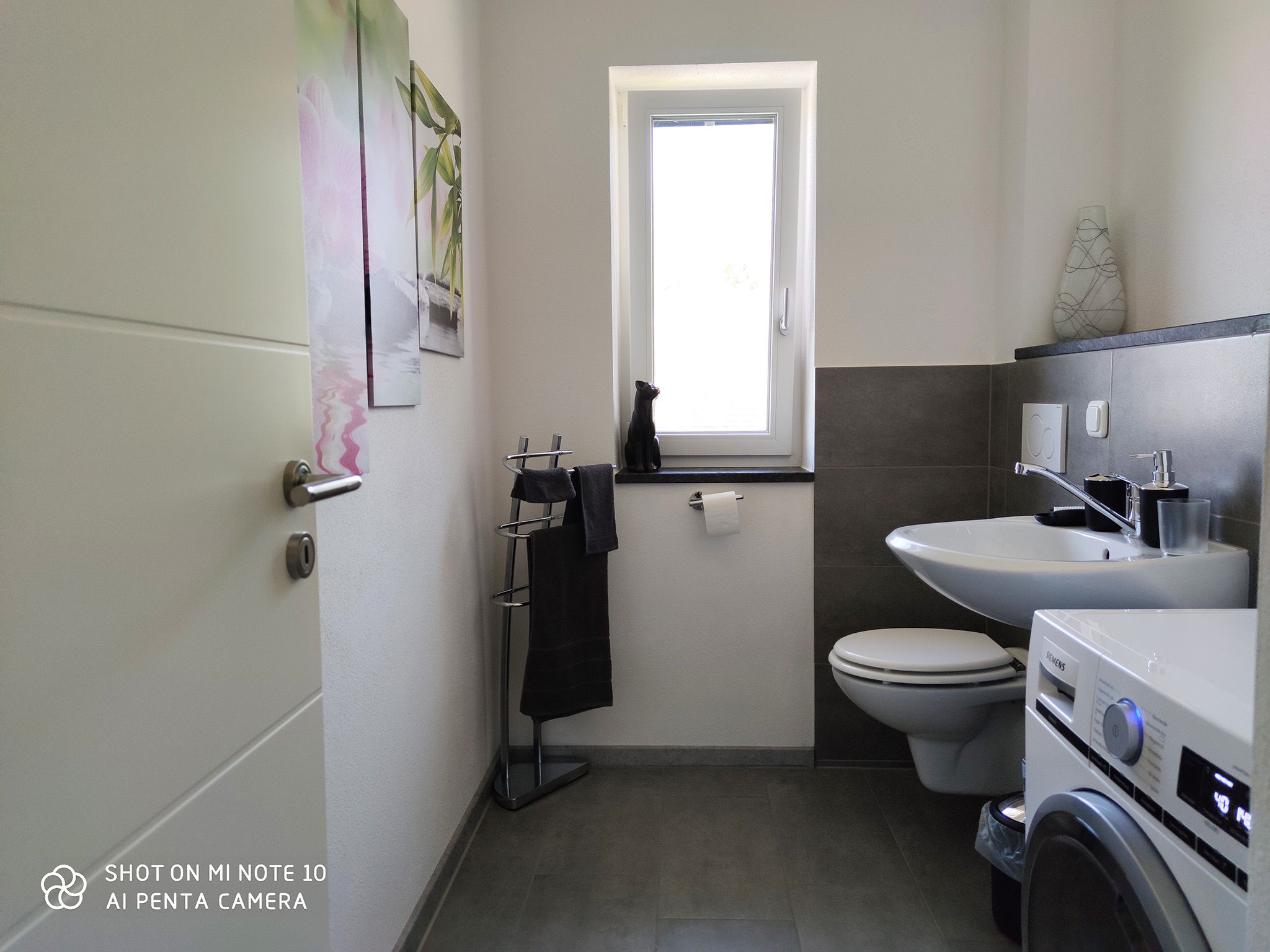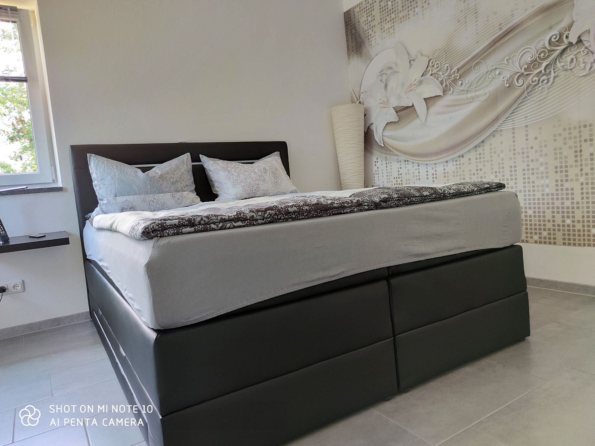 Die Ferienwohnung verfügt über ein separates Schlafzimmer mit Queensize-Boxspringbett. Das große, offene und gemütliche Wohn- und Esszimmer ist ausgestattet mit einem großen 75“ Flachbildschirm (SAT TV) mit Sky-Programmen, einer Playstation 4, Radio, einer großzügigen ausziehbaren Schlafcouch mit vollwertiger Matratze und einen Esstisch mit 2 Polsterbänken für bis zu 6 Personen. Die Küche ist voll ausgestattet u.a. mit Herd- und Kochfeld, Kühl- und Gefrierschrank, Spülmaschine, Mikrowelle,Tchibo Cafissimo Easy Kaffeemaschine (Pads), Toaster, Wasserkocher, elektrischer Grill und Raclette. Das Badezimmer verfügt über Dusche/WC, im zusätzlichen WC befindet sich eine Waschmaschine.
